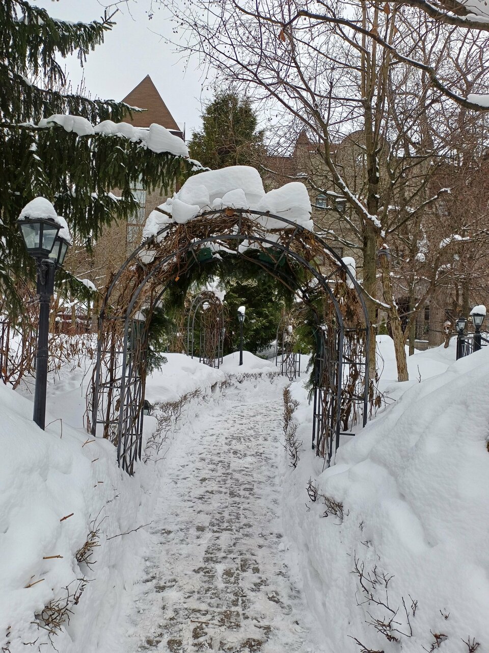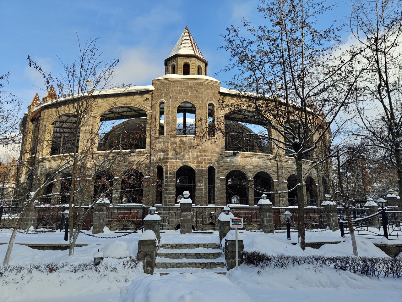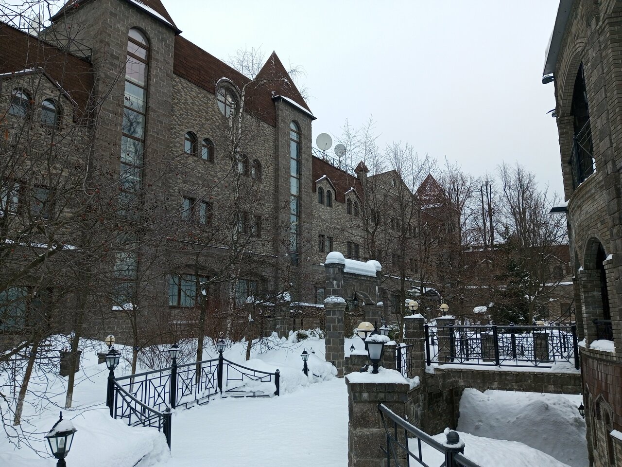 Очень красивая парковая часть,я представляю как хорошо здесь летом с зеленью