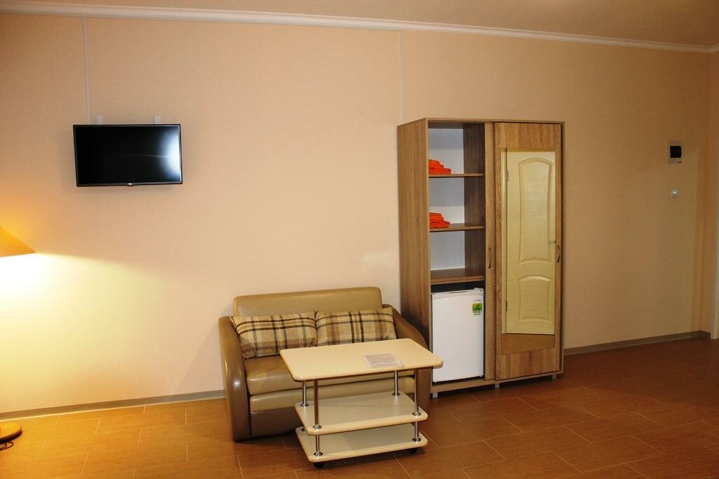 Уютный двухместный номер с кухней. В номере: 1 двуспальный диван, телевизор, телефон, туалетный столик, сейф, бесплатный Wi-Fi Интернет, кухня, керамическая плита, холодильник, чайник. Площадь 12 кв.м.