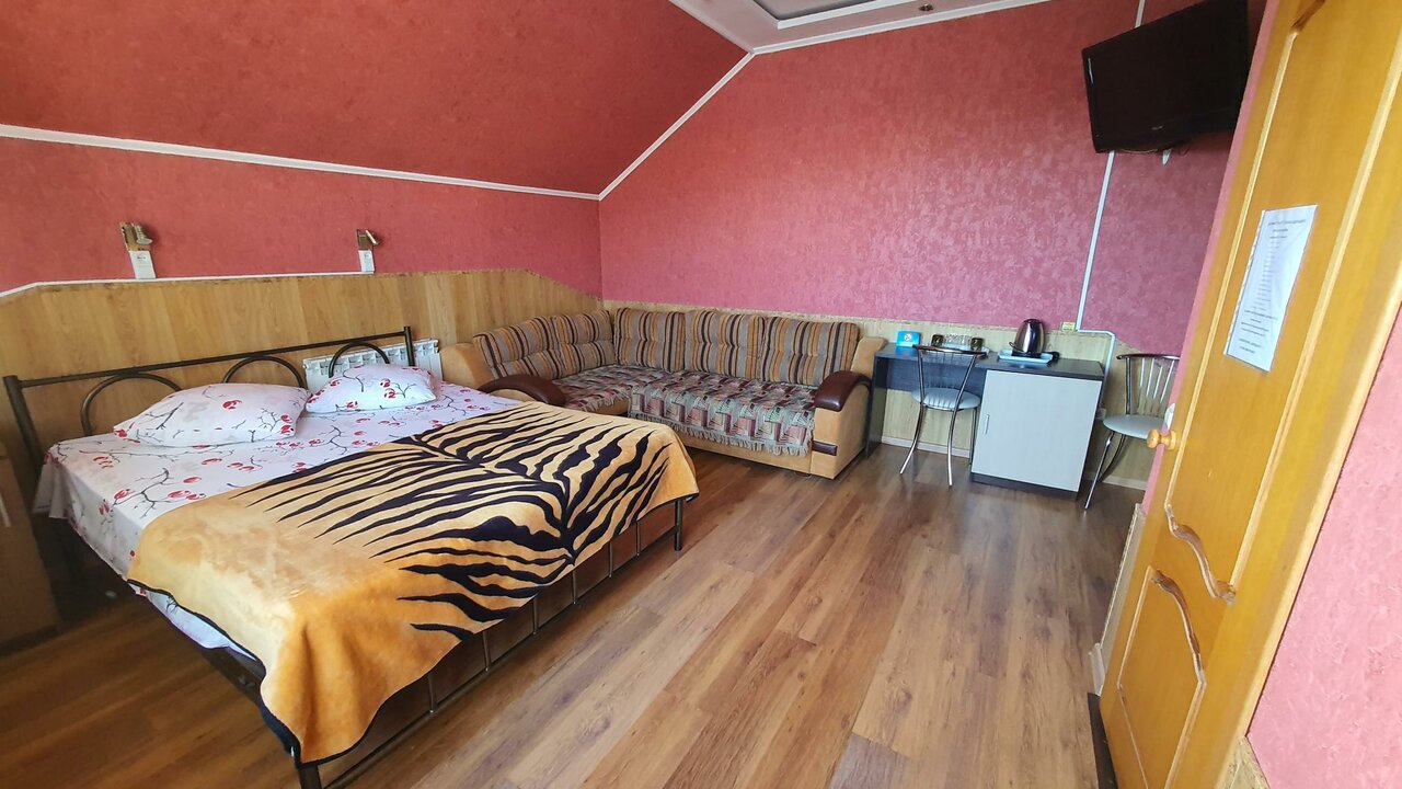 Хорошая гостиница эконом-класса, номер чистый, есть кондиционер, Wi-Fi, телевизор, холодильник. Есть место для парковки авто. Персонал приветливый, мы приехали поздно, помогли нам с организацией вкусного домашнего ужина. Большой респект кафе, которое организовало вкусный ужин.