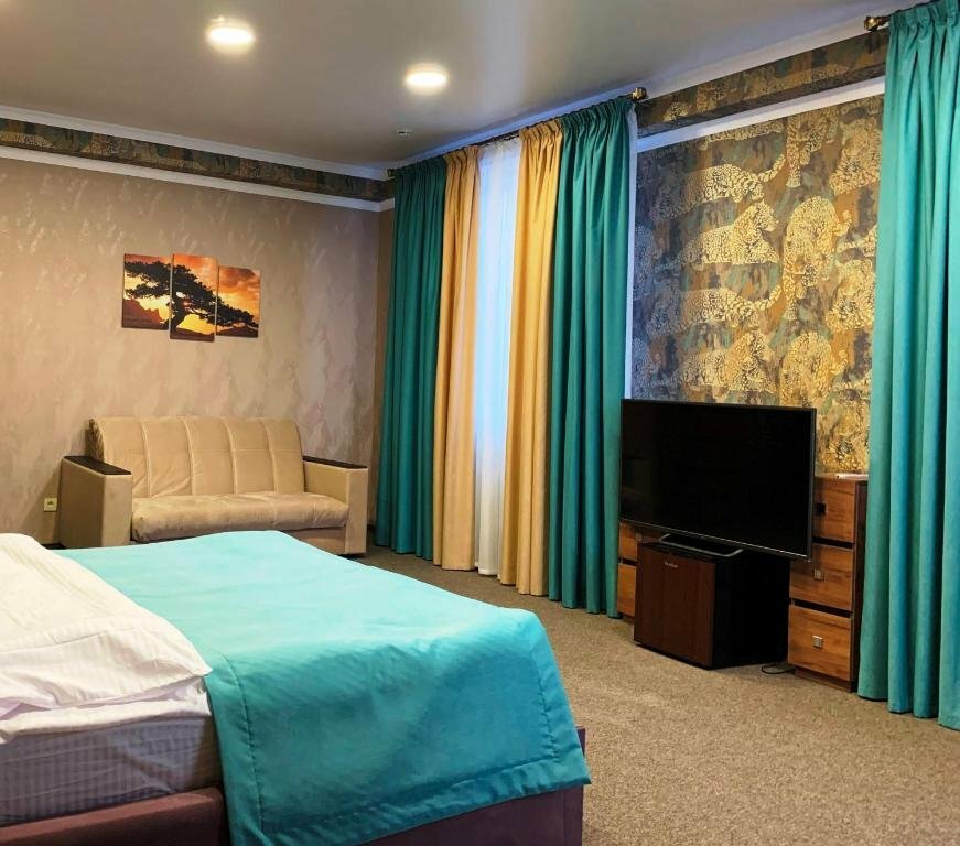 Номера категории Премиум люкс - это сочетание современного стиля, повышенного комфорта и функциональности. Номера, площадью от 35 до 40 кв.м, разделены на полноценную спальную зону и гостиную с диваном.