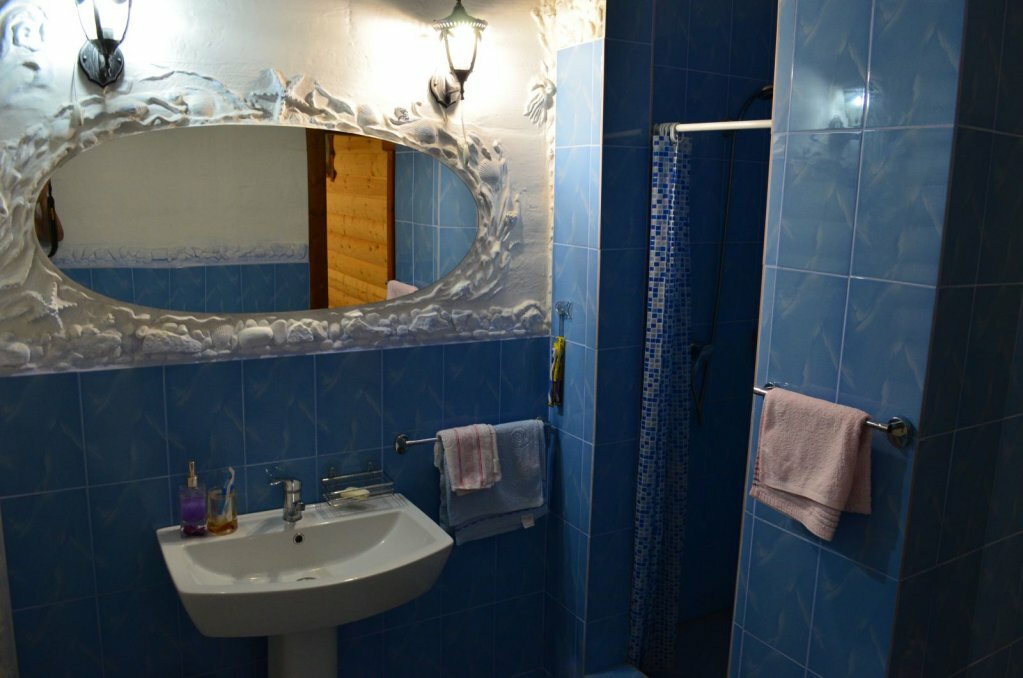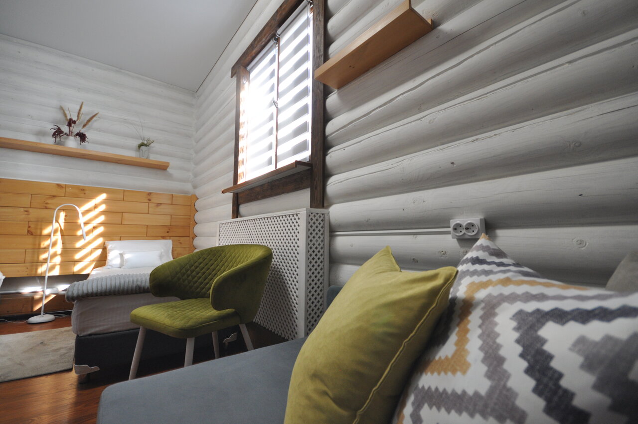 Колоритный интерьер, запах дерева. Уютно. Брали 4 местный номер, 2 кровати в другой комнате от двухспальной (это плюс), раздельный санузел (это редкость) ! Матрас хороший, полотенца тоже. Кондей, холодильник, кулер. Завтрак шикарен (но за отдельную плату).