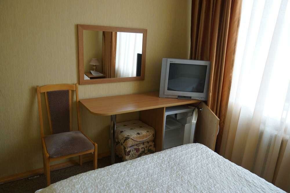 Когда нет больше вариантов… В номере относительно чисто, имеется телевизор, холодильник, возможно будет, кондиционер. Если попросите, то чайник дадут при засислении.