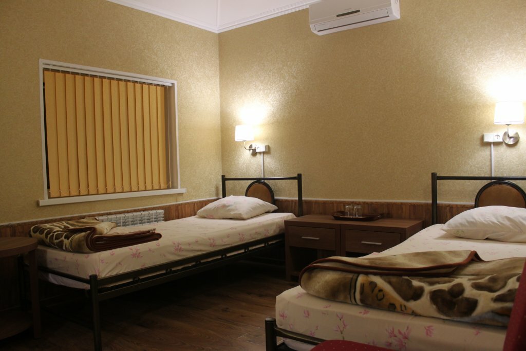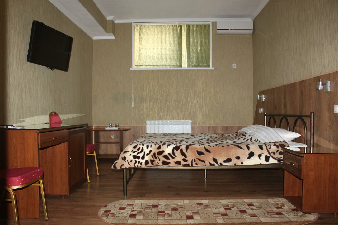 Предоставляет комфортные номера (от 1000 до 2000 ₽/ночь) с кондиционером, санузлом, холодильником, мини-баром, телевизором и бесплатным Wi-Fi. В стоимость некоторых номеров включен завтрак.