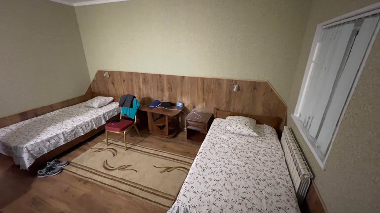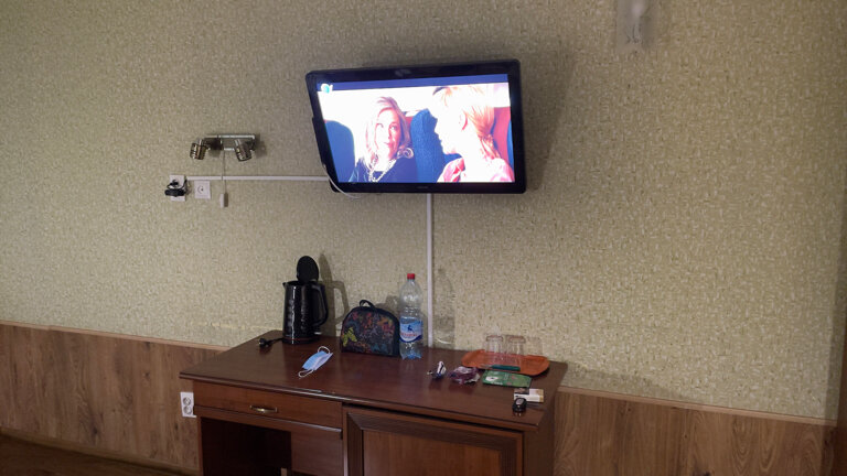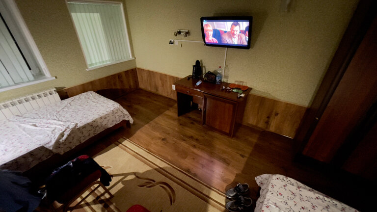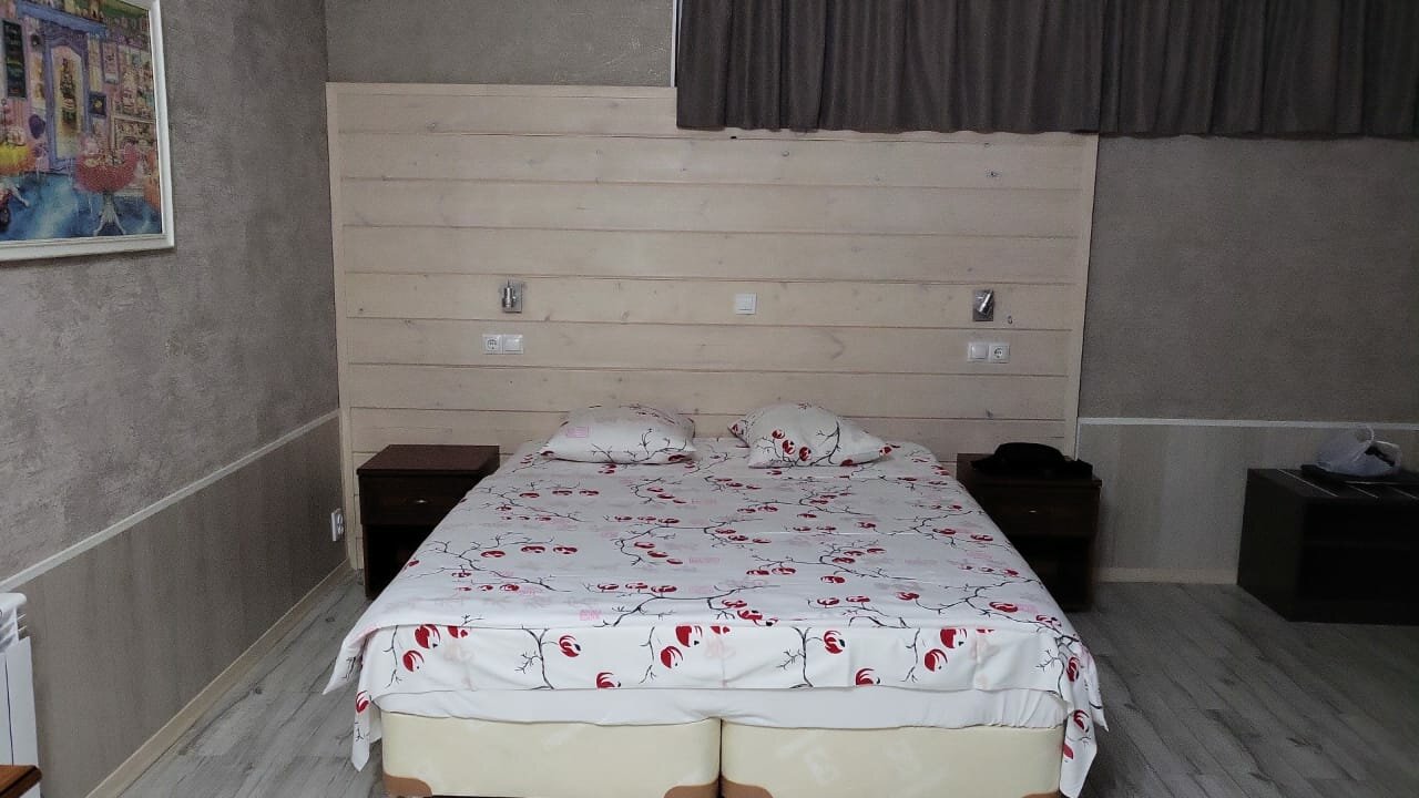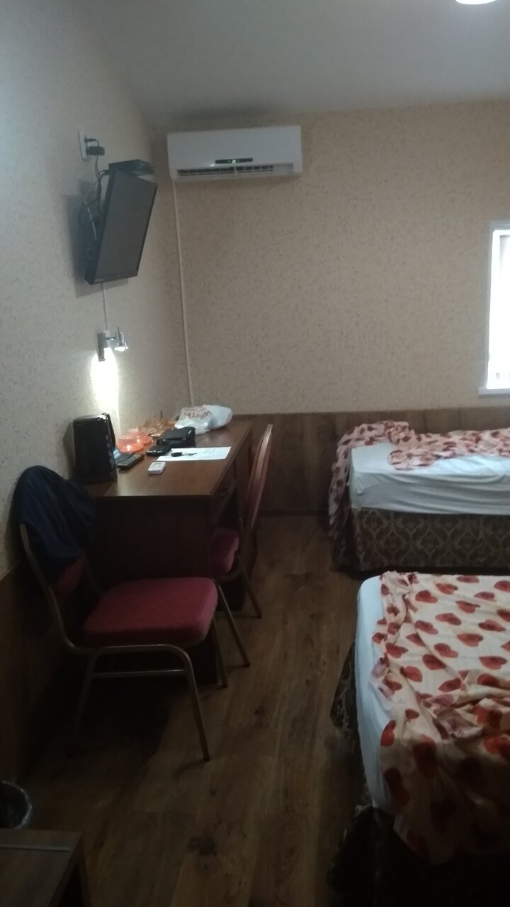 Нужен был отель для ночной остановки на пути из Батуми в Москву. Один из самых простых, но в тоже время оснащённых всем необходимым, отелей по трассе. Приехали поздно, около полуночи, но администратор был, открыла нам въезд на парковку, спасибо. А вот дальше расстроила: затребовала депозит на случай порчи имущества отеля, то есть обозначила некую презумпцию виновности. Это расстроило. Но более всего огорчило то, что в номере, несмотря на выелюченные батареи, была все время страшная духота. Никакое открытое окно не помогло, а вот с началом утренней жизни, крепко добавило шума. Причем участвовали все: машины, какие-то агрегаты, люди, но самое неожиданное — птицы. В общем, отдохнуть и выспаться особо не удалось. Да, после ревностного осмотра номера, депозит был нам возвращён. Туалет, душ все работало.