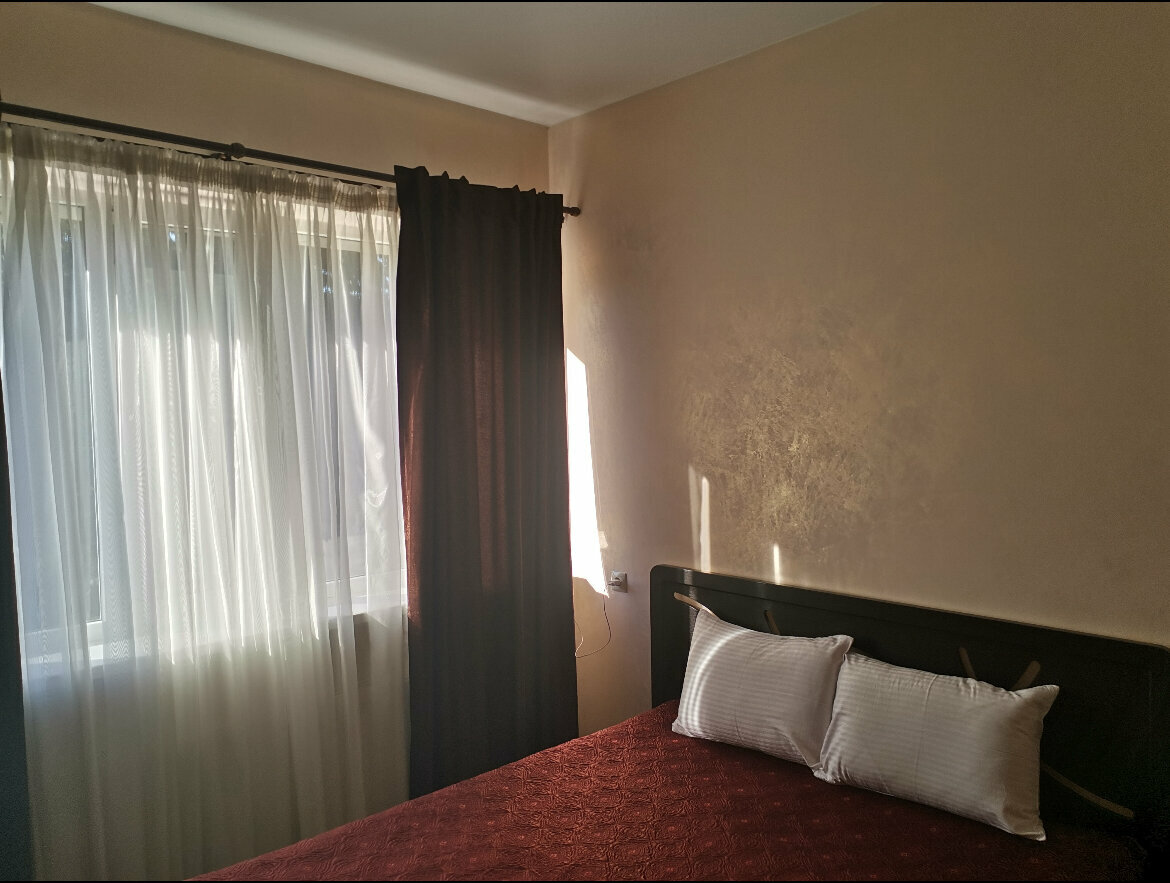 Замечательная гостиница, чисто, номер просторный, мы вчетвером разместились на 2-х спальной кровати, в номере был чайник, телевизор, кондиционер. На этаже общая кухня, где есть все необходимое, мне с маленьким ребенком было очень удобно использовать и холодильник, и микроволновку на кухне. Есть парковка, на ночь территорию закрывают.