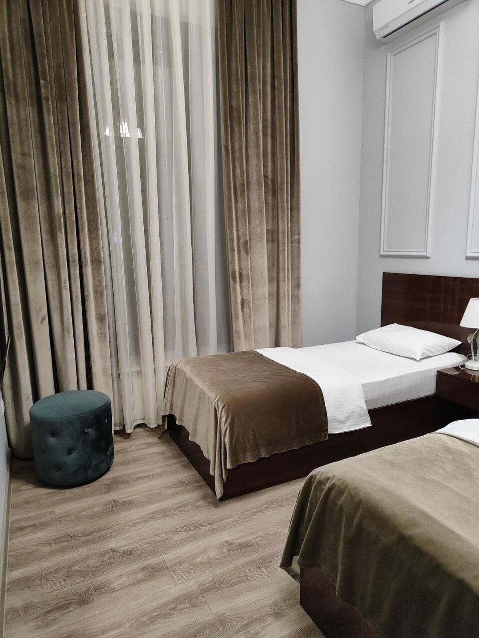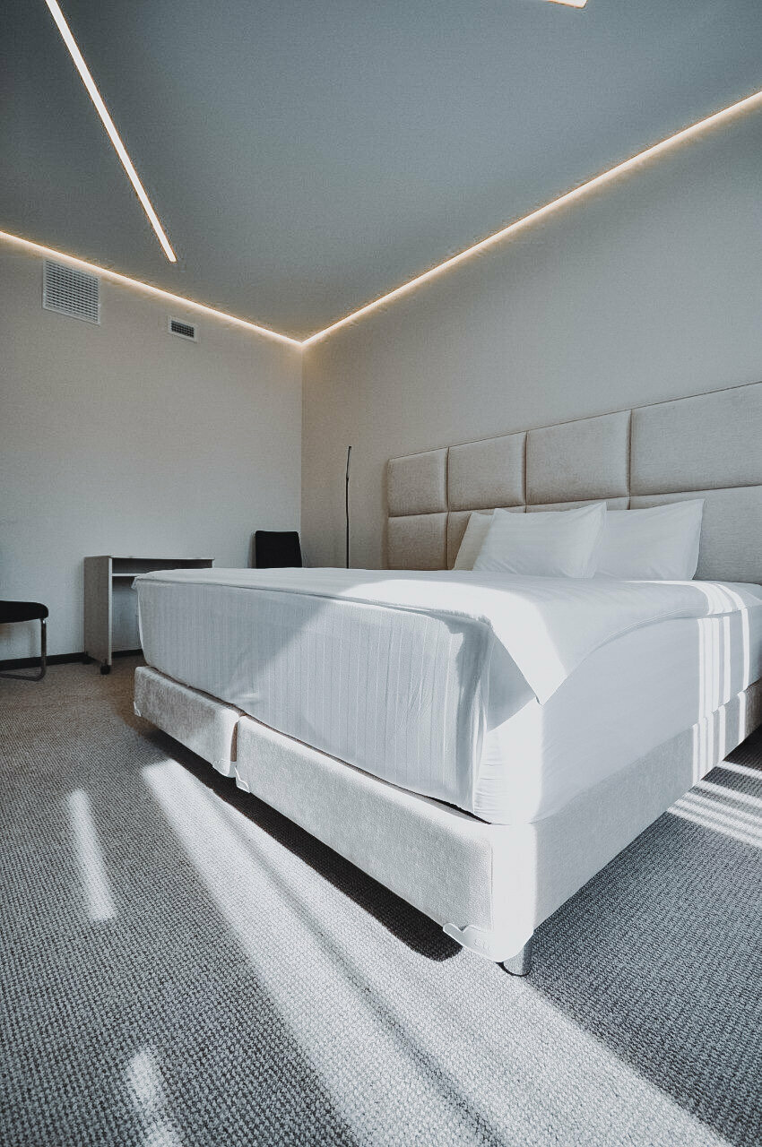 Это лучший отель, в котором я был за 10 лет! Огромный чистый номер с джакузи. В номере есть всё необходимое: туалетные принадлежности, халаты, питьевая вода. Удобная большая кровать, хорошее освещение, правильно установленный кондиционер. Жалко было выезжать из отеля так быстро. Отель удобно расположен для тех, кто едет транзитом: всего 500 метров от трассы. При этом отель в тихом месте: можно отлично выспаться без дискотек и тому подобного. Приятный современный интерьер не только в номере. Соотношение цена/качество на невероятном уровне. И очень приятная девушка администратор.