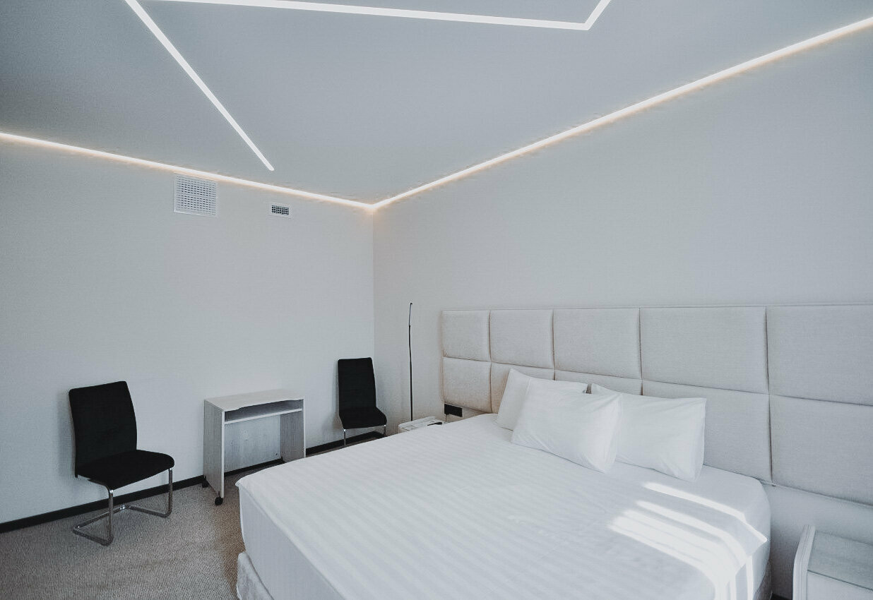 Для тех, кому нужен тихий и комфортный отдых, самое то: комфортабельные и современные номера, хорошая звукоизоляция (соседей не слышно), есть своя столовая-скромная, но покушать можно. В Невинномысске номеров лучше не найти (пробовал в самых популярных гостиницах).