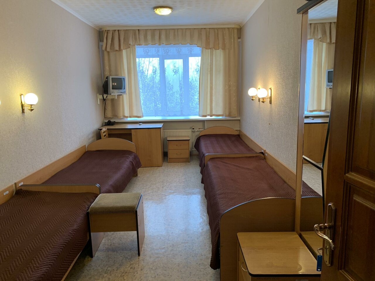 Брал одноместный номер. Не ВАУ ну и НЕ ПЛОХО. кровать мягкая, постель чистая, санузел совдеп, но чисто. 3 полотенца. Чайника в номере небыло. При -26 на улице в номере было свежо. Телевизор не работает, да он мне и не нужен был особо. Отдал 1800или 1900.