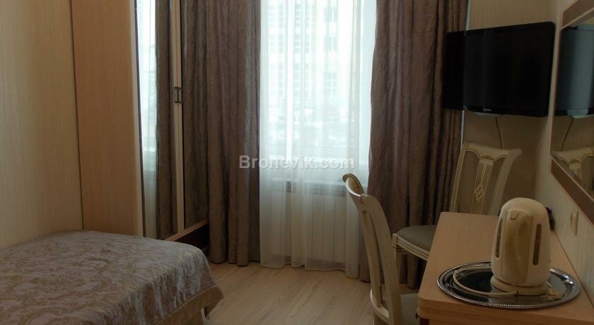 Гостиница маленькая, уютная. Номерной фонд не большой, одно-двухместные номера, всего их семь. В номерах есть все что нужно- санузел, кровать, телевизор. Персонал вежливый, предупредительный. Мне нужна была губка для обуви, так администратор ходила в магазин, покупала для меня губку… Расположение удобное, до нужных мне локаций добирался пешком, все в пределах пешей доступности. А вот с питанием не очень. Я привык сытно завтракать, а здесь дают пару блинов и яблоко, или одно яйцо и хлеб с куском колбасы. Кроме того, все это надо греть в микроволновке, что не делает эту пищу здоровой. Поэтому приходилось дополнительно закупаться в магазине. В целом, рекомендую, если не нужен сытный завтрак, то остальное на 5.