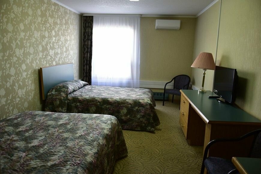 кровать, душ канадский, завтрак (сосиски,яйца, сельдь под шубой, пицца и булки, каши, чай-кофе), телевизор, холодильник. Очень жаркий номер был у меня, спал с открытым окном, системы вентиляции нет(((( приходится после душа проветривать иначе душно. Рядом два магазина, парковка для машин.