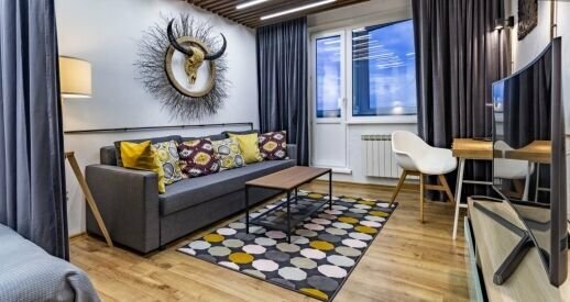 Останавливаюсь не в первый раз, все апартаменты имеют свой дизайн, поэтому каждый раз в предвкушении, что там увидишь… Есть все, что нужно ( тапочки, щётки, гели, чай, сахар, капсульная кофемашина с кофе). Чисто, белое белье. Стоят ноутбуки или компьютер, принтер)) для деловых людей отличный вариант. Дом находится на берегу Оби, поэтому вид из окна потрясающий!!