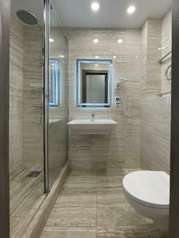 Все понравилось. Номер чистенький, все новое. Ремонт хороший и со вкусом. По современному. В ресторане шикарный интерьер. Люстры, аквариумы с рыбками. Меню надо доработать. Нет фото блюд. Соусы нет состава из чего сделаны. Мороженое очень маленькая порция ничем не украшено. У остальных блюд красивая подача. Шведский стол на завтрак вкусный, богатый, только не работала кофемашина и не был подключен тостер для тостов. На ужин предлагают обеденный ланч. Для тех кто обедал, на ужин выбирали из ресторанного меню, очень дорого, выбрать тяжело. Лучше бы на ужин сделали тоже шведский стол. Общее впечатление хорошее. Территория вокруг гостиницы чистая. Только стройка идёт рядом.