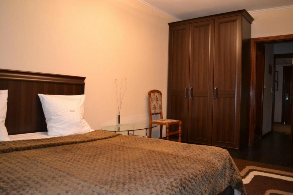 Неплохая гостиница. Сервис на хорошем уровне. В номерах все необходимое есть: холодильник, чайник, чай, кофе, вода, шампунь, гель для душа, мыло и т. д. Очень вкусные завтраки, особенно сырники, ради них готова снова приехать Единственный минус, это ремонт в номерах, довольно уставший, пошарпано все.