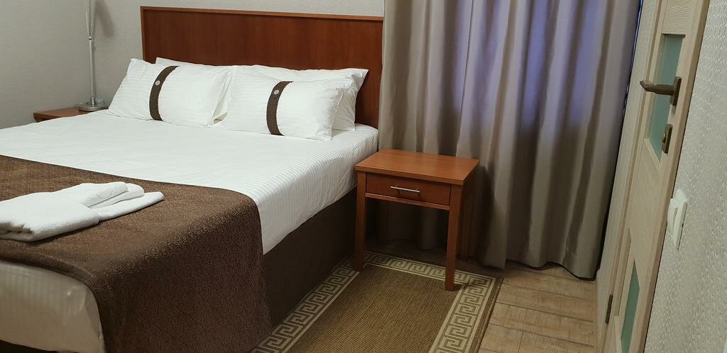 Уютная гостиница с доступными номерами. Ежедневная уборка и смена полотенец, отзывчивый дружелюбный персонал. Центр города близко и магазины с продуктами