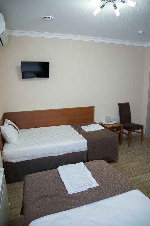 Приветливый администратор и чистое бельё. Совершенно необходимо сделать розетки у изголовья каждой кровати и вентиляцию в душе в том числе и в эконом номерах.