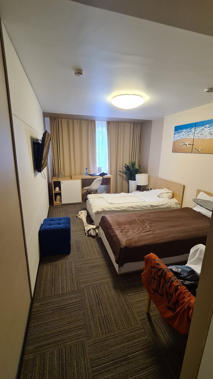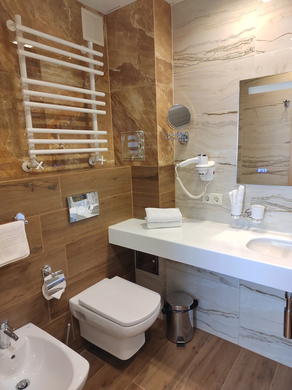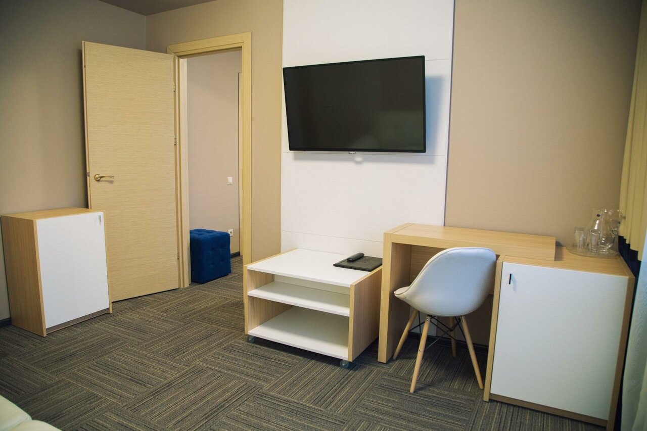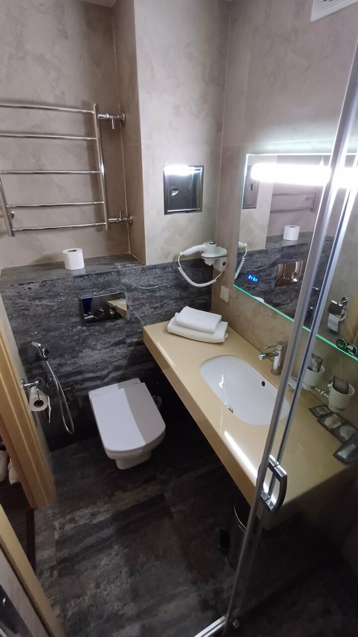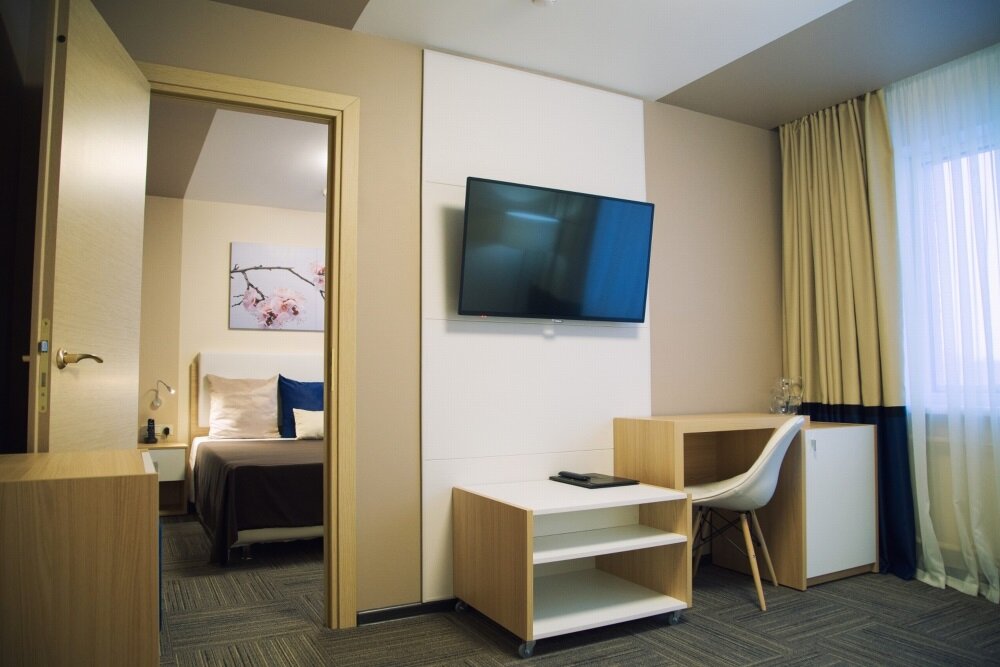 Очень классный интерьер номера. Приятные администраторы. Хорошая шумоизоляция. Хорошой современный телевизор. Огорчило отсутствие цифровых каналов. Хорошая скорость wi-fi. Порадовал утюг в номере. Можно погладить одежду не куда не ходя. Цена за номер выше чем в других регионах. От завтрака ожидал большего. Порции маленькие, подают с задержкой, еда не вкусная. Плохо что нет трансфера до аэропорта.