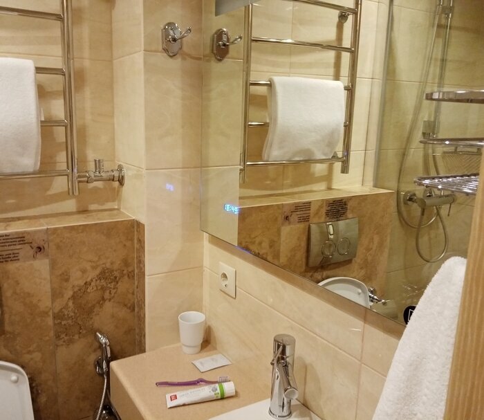 Номера стандартные маленькие. Но, хороший ремонт, хорошая мебель, постельное белье новое, ванная комната удобная. Сервис понравился. В номере есть все необходимое. Ещё завтраки были бы чуть более разнообразные, поставил бы 5 баллов. Рекомендую эту гостиницу.