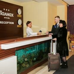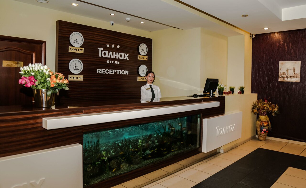 Гостиница «Талнах» (Норильск, ул. Первопроходцев, 15) — трёхзвёздочный отельный комплекс с круглосуточным обслуживанием. К услугам гостей: номера с холодильником, мини-баром, телевизором, Wi-Fi, феном, халатами и тапочками. На территории работают ресторан, бар, тренажёрный зал, прачечная, конференц-зал и бесплатная парковка. Предоставляется завтрак, чай/кофе в номерах, сейф и камера хранения. Время заезда — 12:00, выезда — 10:00.