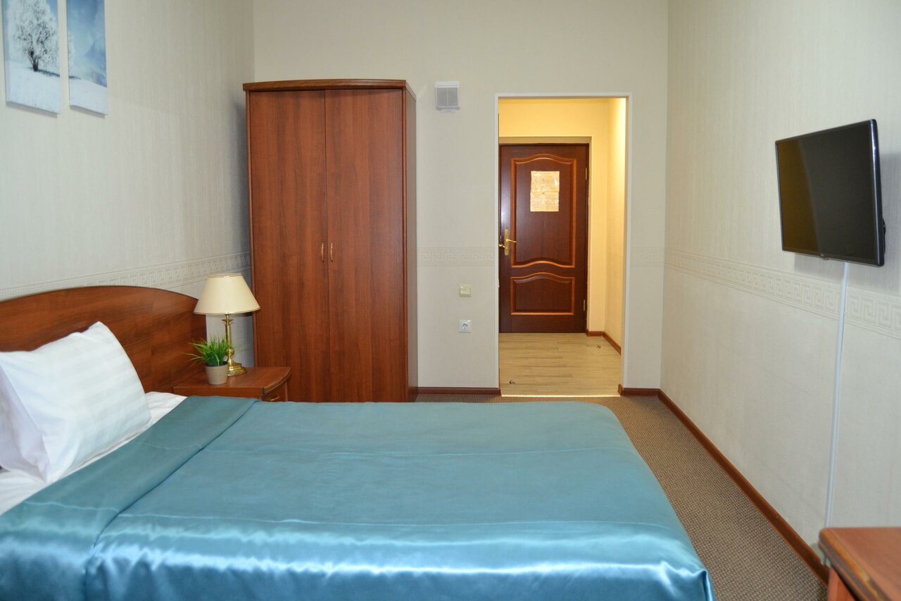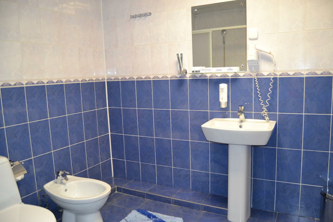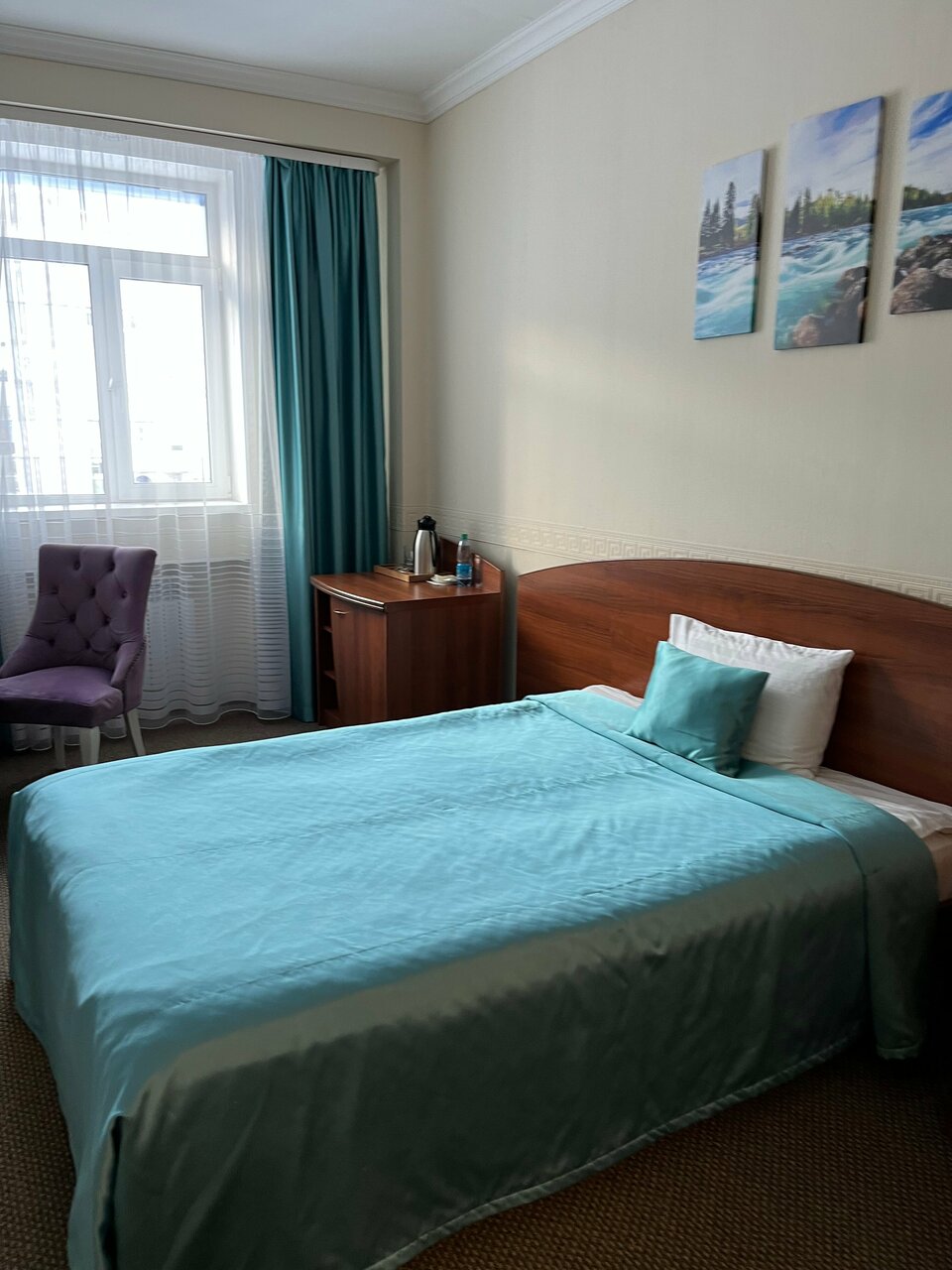 Отличная современная гостиница, есть лифт, но чемоданы и коляски надо тащить по лестницам. Туалет—душ—ванна новые и чистые. Каждый день пылесосят и заправляют постель. Белье не меняют, и это разумно, имхо. Отличный завтрак типа шведского стола. Обед-ужин с официантами, тоже неплохо. Расположение немного странное — во дворе жилых довольно облезлых домов советского типа. Недалеко множество продуктовых магазинов, площадка обозрения и памятник комару.