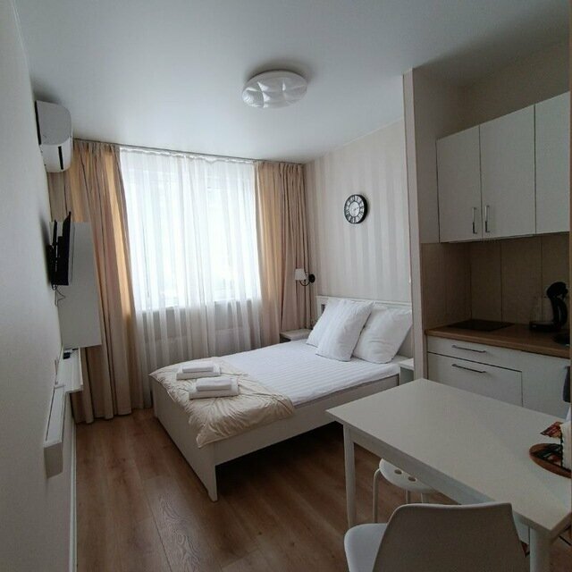 Уютные мини студии , расположение удобное , выезд из жк близко ,напротив дома пятерочка,до центра Краснодара 10 мин. ,а цена значительно ниже. Чистота и приветливые администаторы , есть вообше все , что надо ,даже порошок для стирки, сделано все для удобства отдыхаюших. На вопросы отвечают быстро и четко,коды для входа работали на протяжении всего проживания, никаких проблем и залогов ,все отлично! Останавливаюсь не в первый раз,однозначно рекомендую.