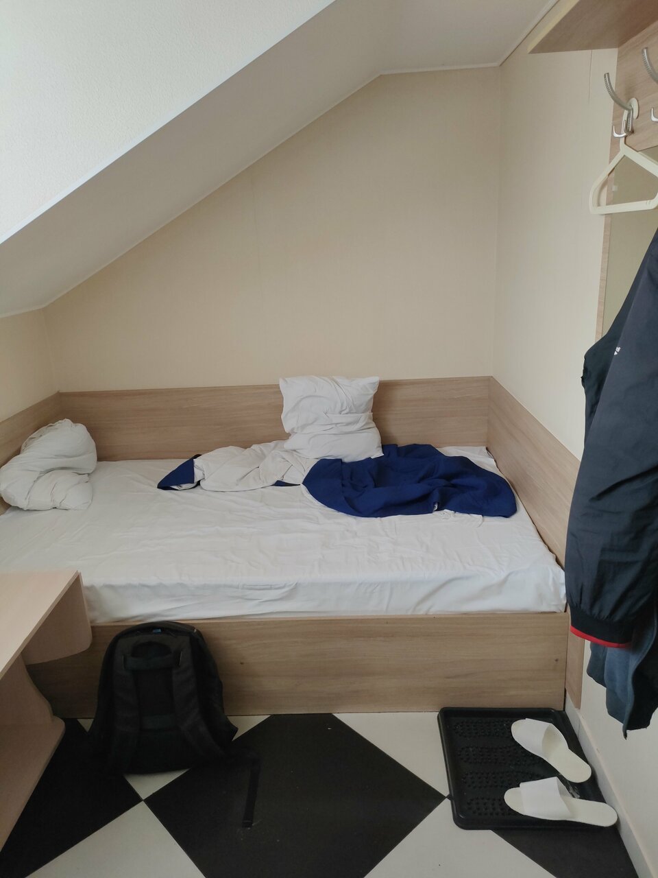Очень понравилось. Номер обошёлся в 2500 рэ. Небольшой,но есть всё необходимое. ( душ, туалет, кондиционер, LED телевизор,набор посуды, электрический чайник с отлетевшей крышкой и без функции выключения. Ну и ладно,зато есть)) . И кулер на этаже. Удалось разместиться в нём втроём,кроме двух кроватей есть классное кресло-кровать. Машину загнал на территорию, огороженную забором- бесплатно. Заехал в час ночи. В обычных гостиницах расчетный час всегда 12 дня,после оплачивай следующие сутки. А здесь сами предложили оставаться в оплаченном номере до завтрашнего часа ночи. Спасибо за честность.