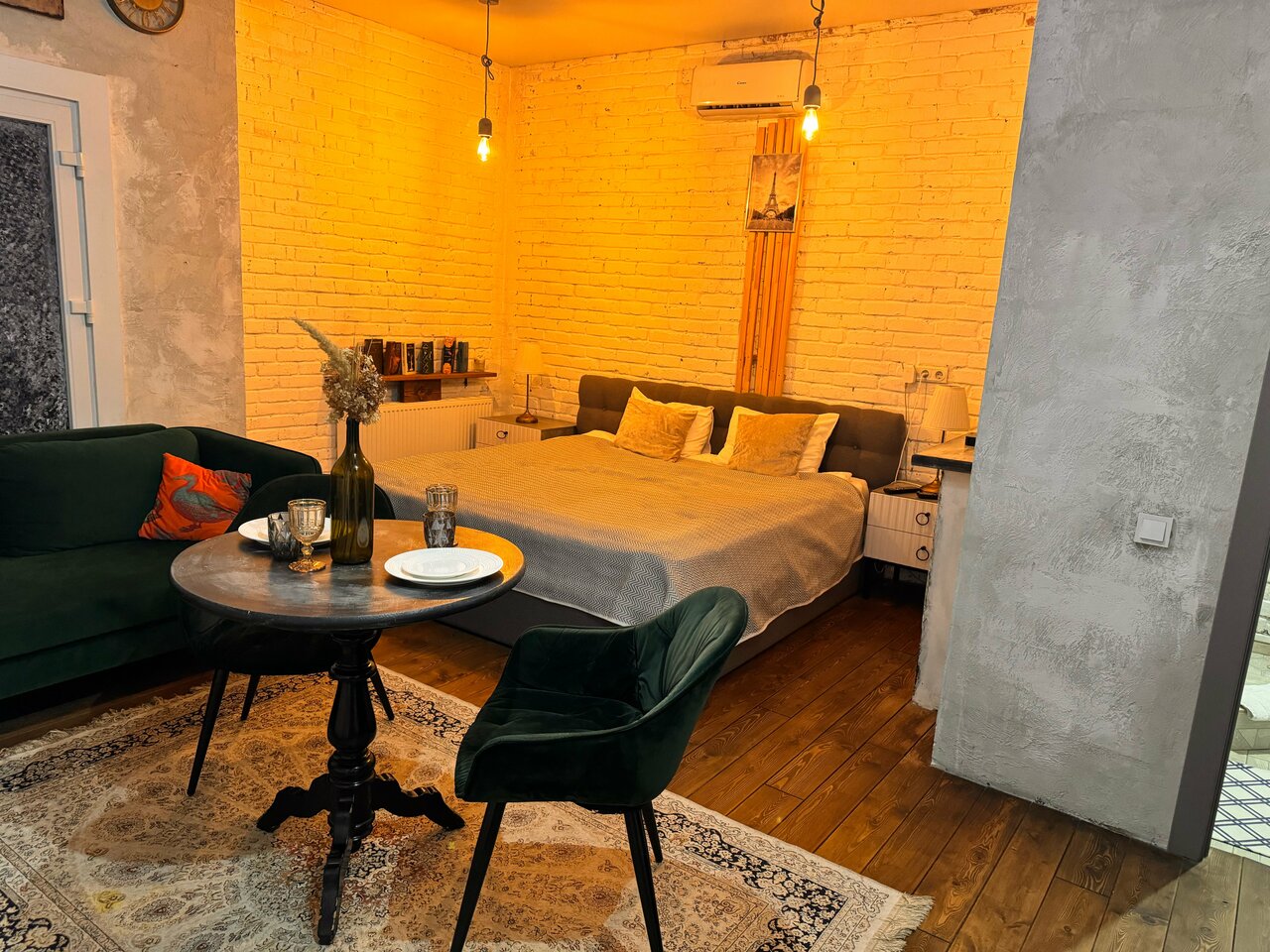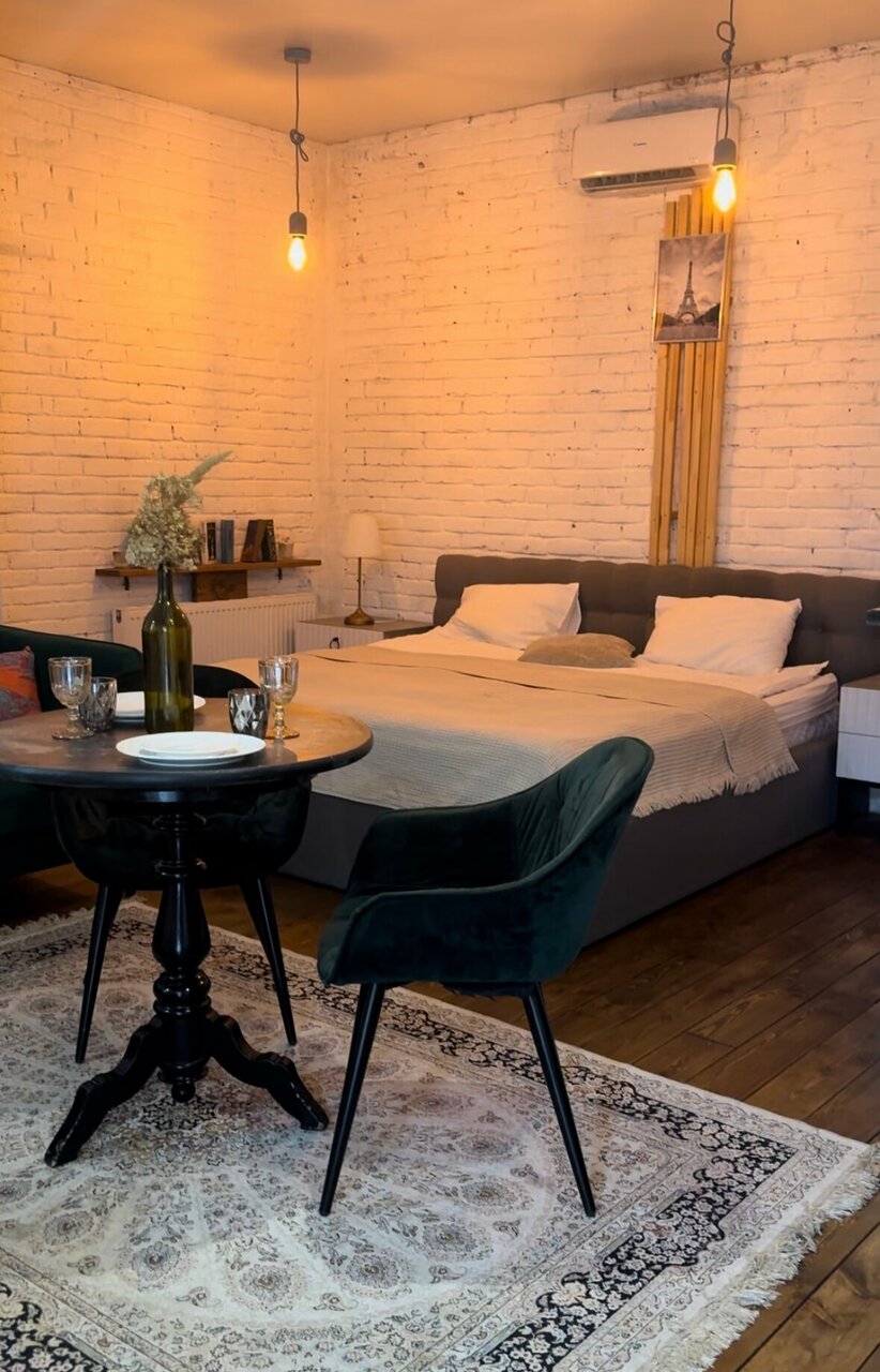 Очень уютный и атмосферный дворик. Звёздочка среди городской суеты. Еще только поднимаешься по лестнице гостевого домика, а уже пропитываешься красотой вокруг. Сама студия по-настоящему радует глаз: стильная, комфортная, полностью соответствует представленным в объявлении фотографиям. Оснащена всем необходимым и даже больше. Владелец-очень приятная девушка! В любых ситуациях приходит на помощь. Очень легкое взаимодействие и процедура заселения/выселения. Остались самые прекрасные впечатления! Лариса, огромное вам спасибо! Пусть все ваши задуманные планы обязательно реализуются. С таким подходом и тягой к прекрасному вы должны быть вне конкуренции.
