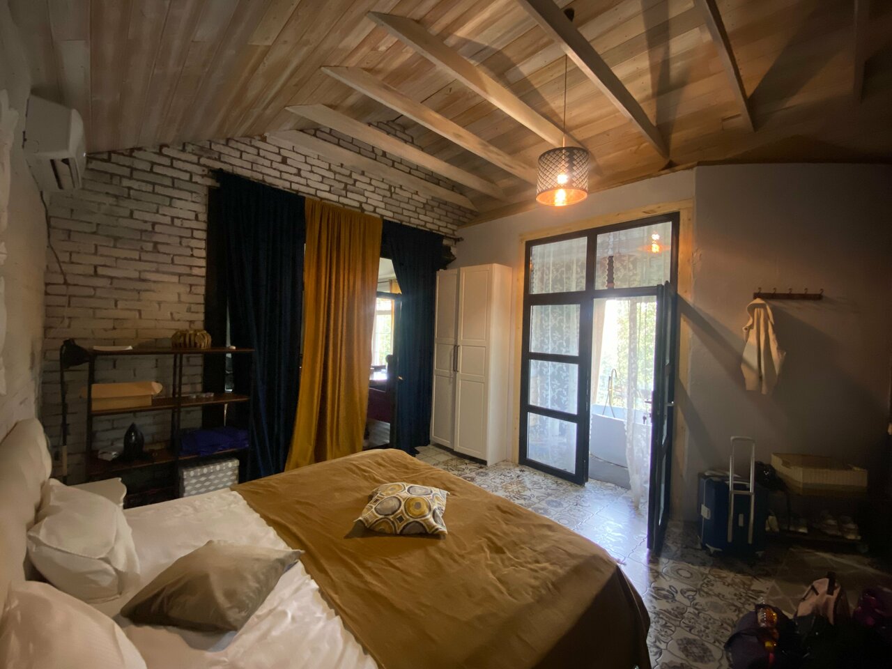 Атмосферность осени в этом месте завораживает! Дворик с разноцветными листьями, теплый свет гирлянды все очаровывает! В номере для удобства все на своих местах, продумано до мелочей. Смешание разных стилей очень удачное сочетание! Гармония и душевность. Очень понравилось!