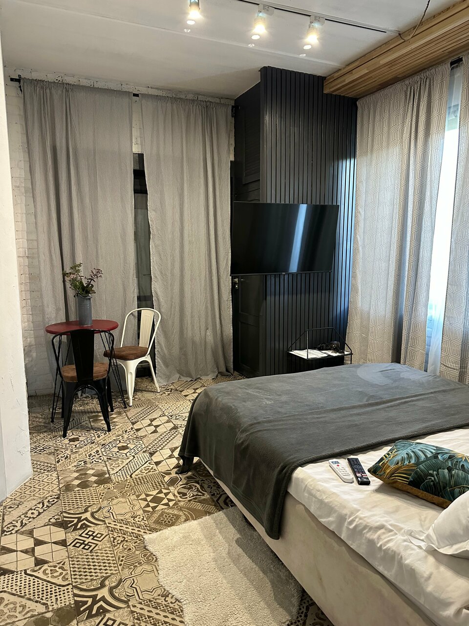 Все понравилось. Удобная локация. Есть парковка возле гостиницы. Номер был просторный, очень уютный, теплый и тихий. Для комфортного отдыха есть все. Мы были одну ночь, но успели восстановиться и отдохнуть. Хороший матрас, белье. Все сделано с любовью и со вкусом. Огромное спасибо за такое отношение к гостям.