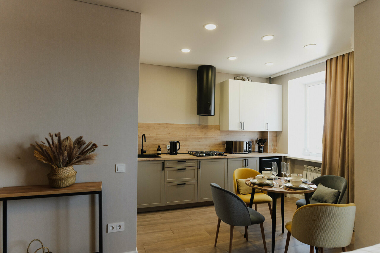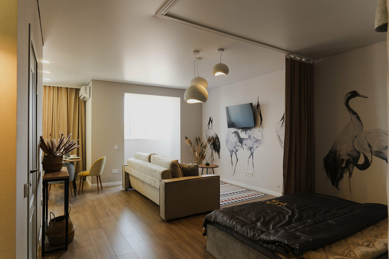 Номер категории «Студия» – это просторный номер повышенной комфортности со своей мини-кухней и балконом. Номера расположены со второго по пятый этаж.• Размещение: 2-х человек на основных местах и 2-х человек на дополнительном месте (диван-кроват...