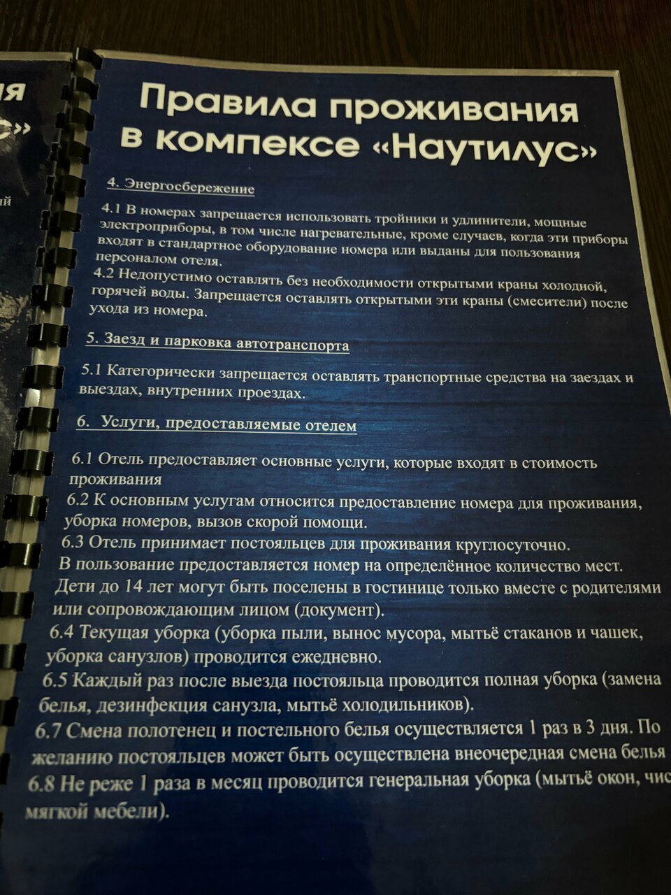 Гостиница «Наутилус» (Новочеркасск, Силикатный переулок, 1Б) — мини-отель категории 2★ с круглосуточным заселением. Предлагает номера с кондиционером, звукоизоляцией, Wi-Fi и кухонными уголками. В инфраструктуре: два бассейна (крытый с подогревом), сауна, хаммам, ресторан, кафе, spa-зона и терраса. Доступны платные услуги (трансфер, химчистка) и удобства для семей (детские кроватки, игровая комната). Разрешено проживание с животными (за доплату). Бесплатная парковка и завтрак. Подробности: nnautilus.com/hotel(https://nnautilus.com/hotel), телефоны: +7 (904) 444-47-71 (бронирование), +7 (8635) 21-20-97 (хостел).