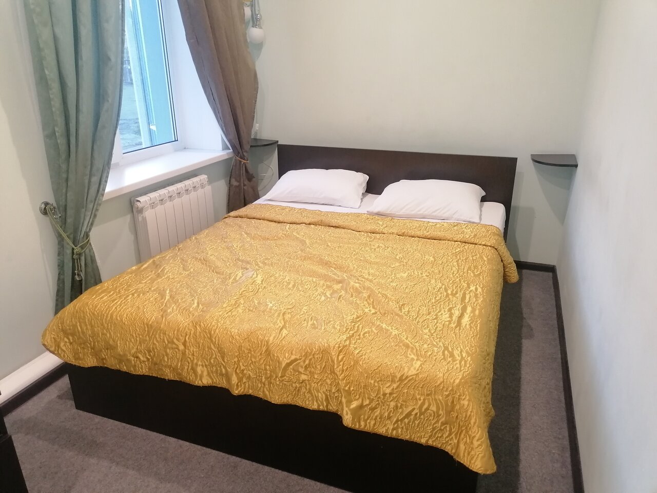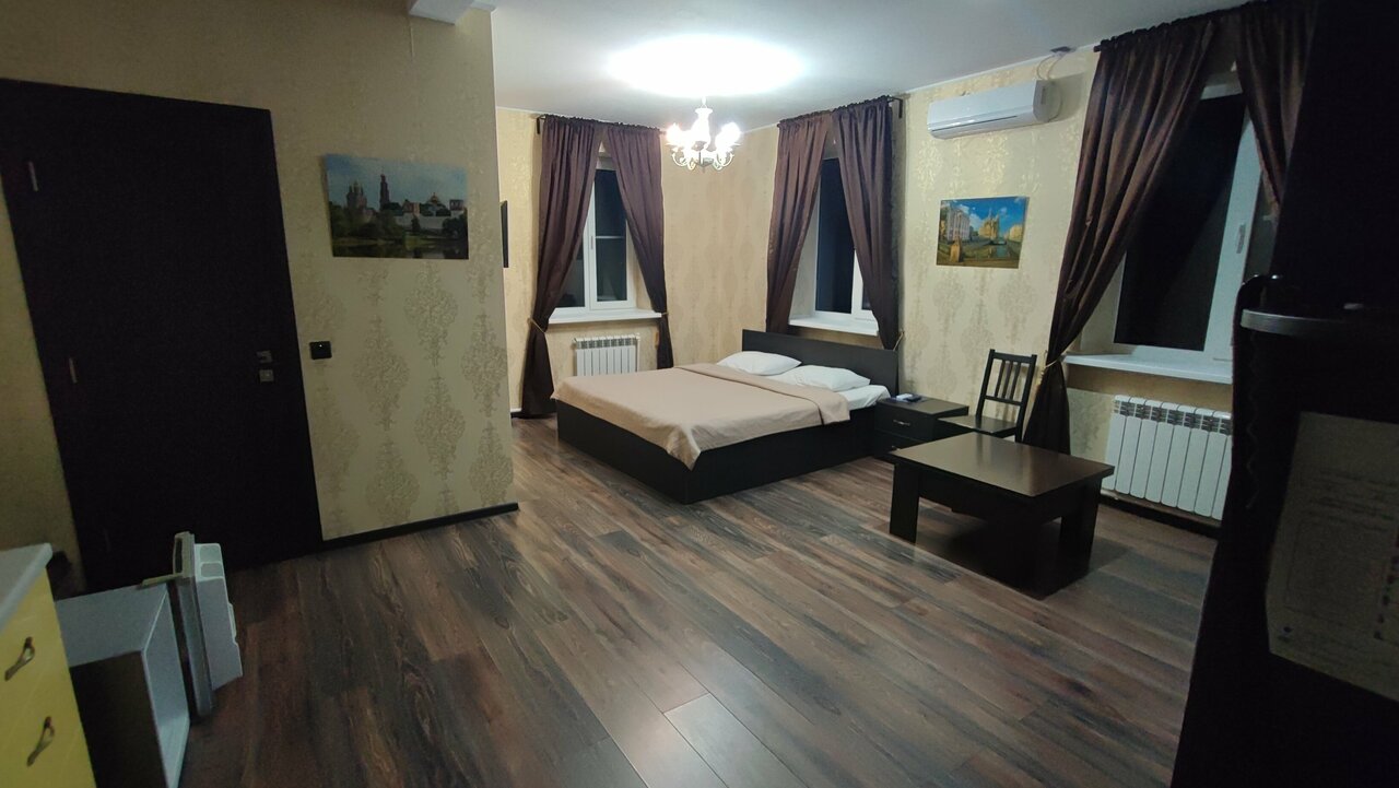 Уютный однокомнатный номер с двухспальной кроватью, двумя прикроватными тумбами и письменным столом. Номер оборудован ЖК-телевизором с доступом к кабельным каналам и бесплатной связью Wi-Fi. Санузел оснащен ванной с душем, феном.