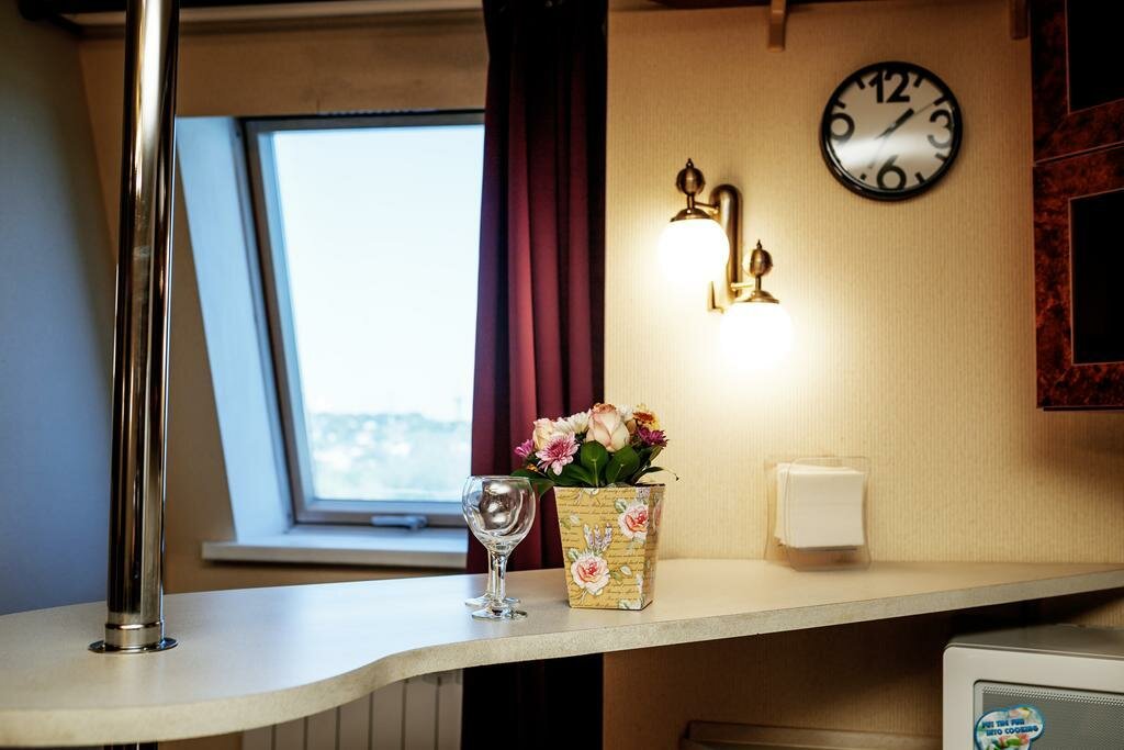 Хорошая гостиница, останавливались на одну ночь, брали номер на троих Чаплин студия-люкс, всё чисто,современно, хорошая мебель, сантехника, есть чайник, холодильник, телевизор и всё необходимое для комфортного ночлега. Утром заказали завтрак 250 руб.один ,за такую сумму неплохой. Рекомендую.