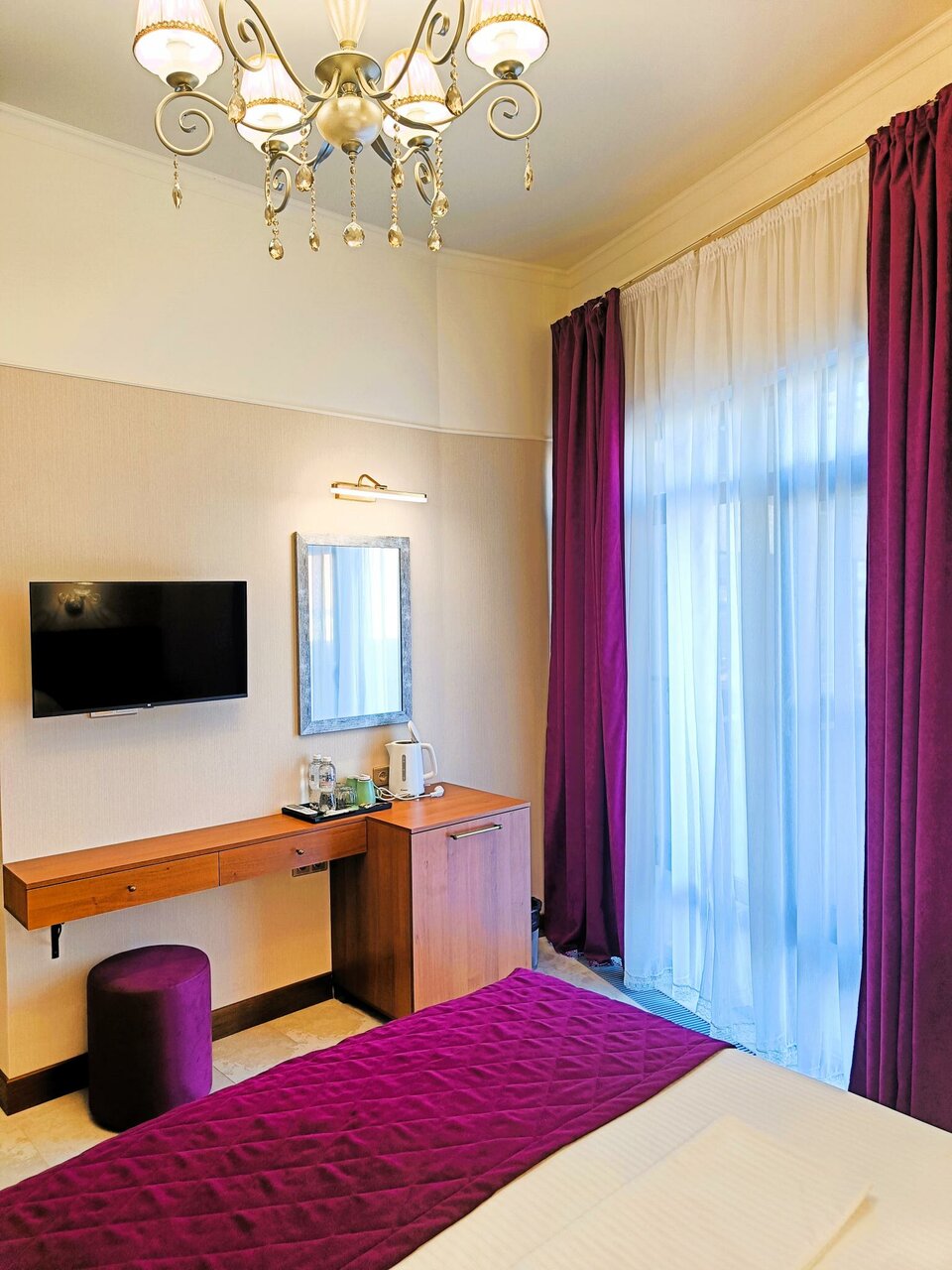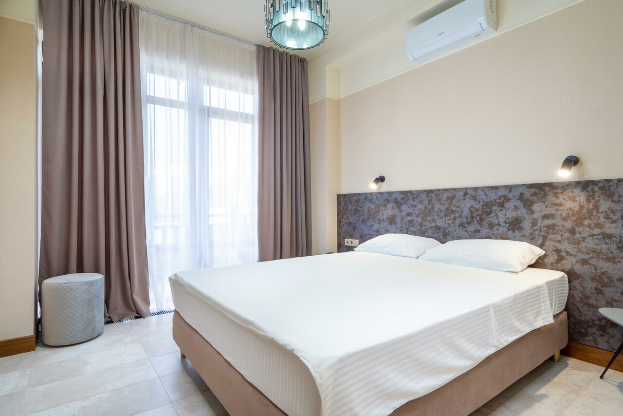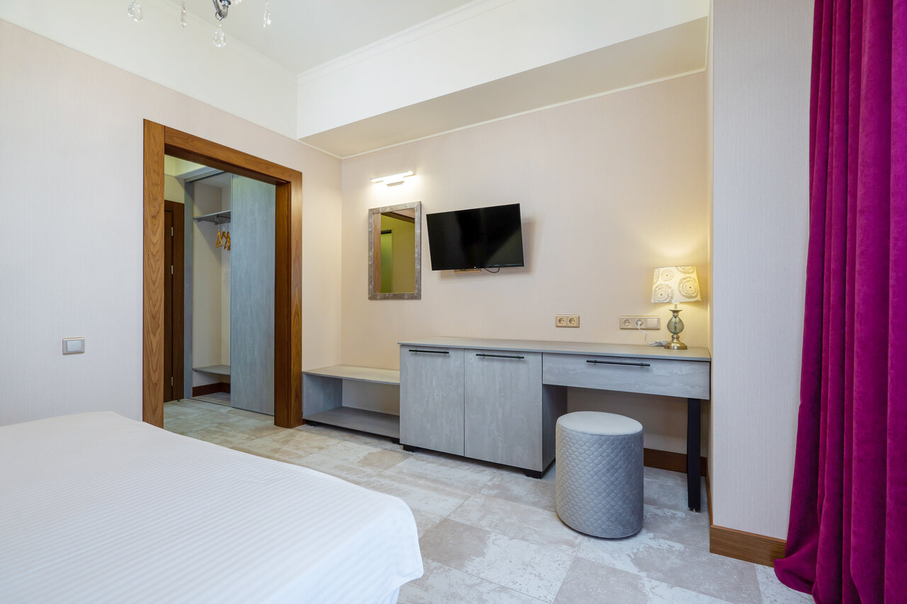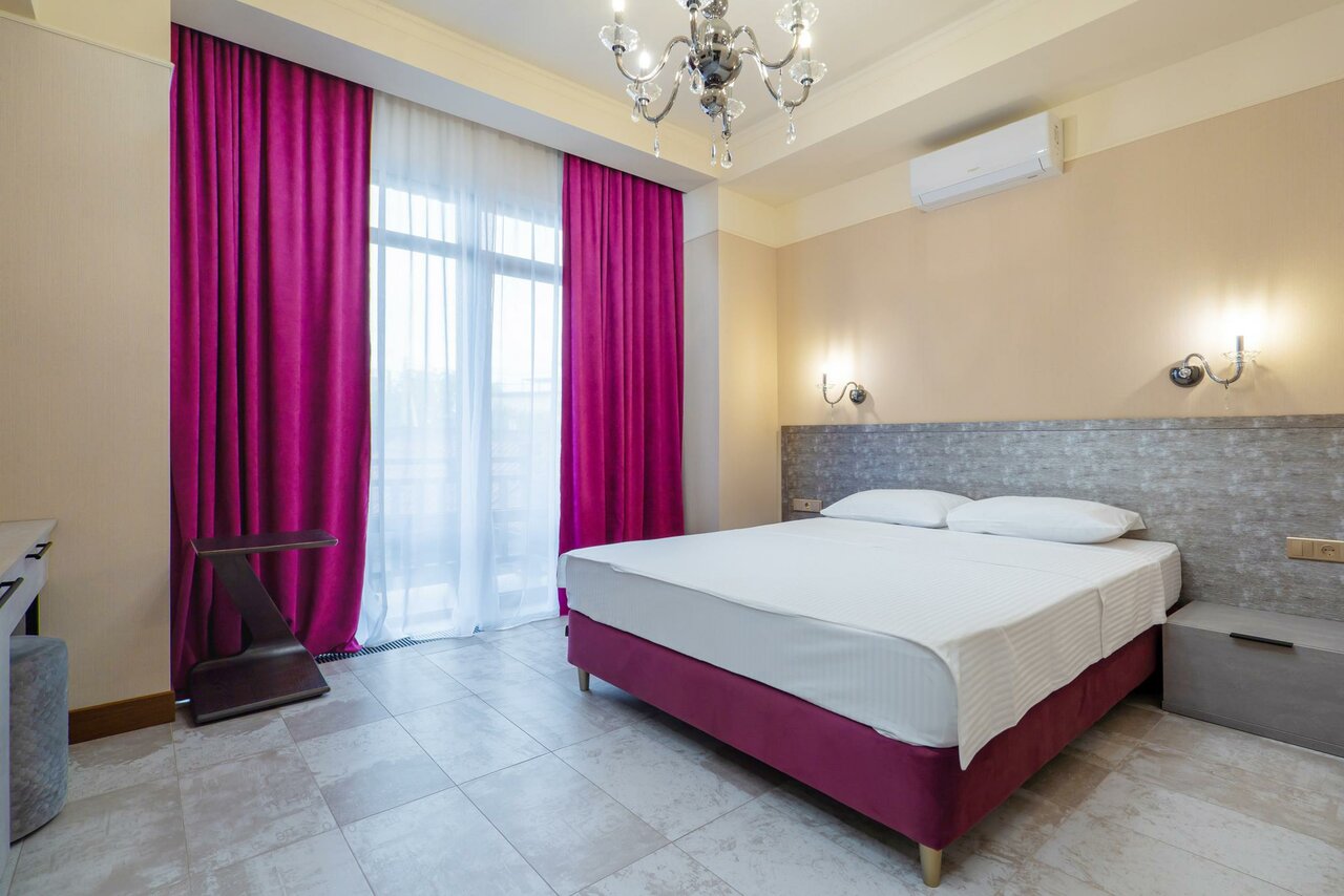 Удобства: — Номера с кондиционером, холодильником, Wi-Fi, ТВ, сейфом и санузлом. — Крытый бассейн, хамам, джакузи, сауна, SPA. — Бесплатная парковка, лифт, детские кровати (платно). — Завтрак (на выбор), чай/кофе в номерах. — Пляжные полотенца, фен, тапочки.