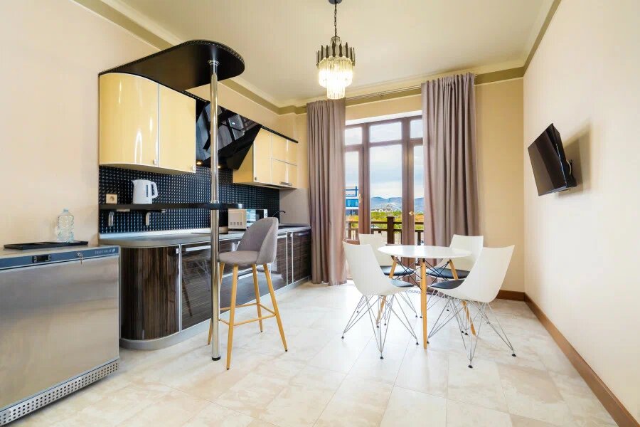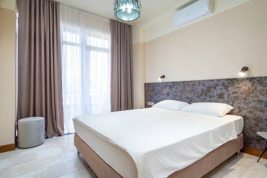 Замечательная гостиница!!! Находится в трех шагах от моря. Вежливый и доброжелательный персонал! Номера новенькие и чистые. Очень уютно и комфортно! Есть вкусные завтраки В 3-х минутах ‘Магнит’, в 10-15 минутах столовые. До Набережной минут 10 ходьбы.