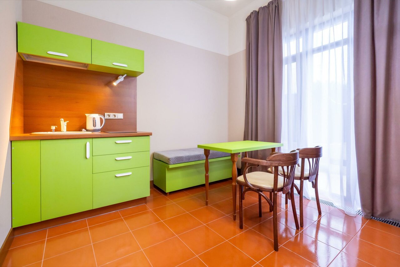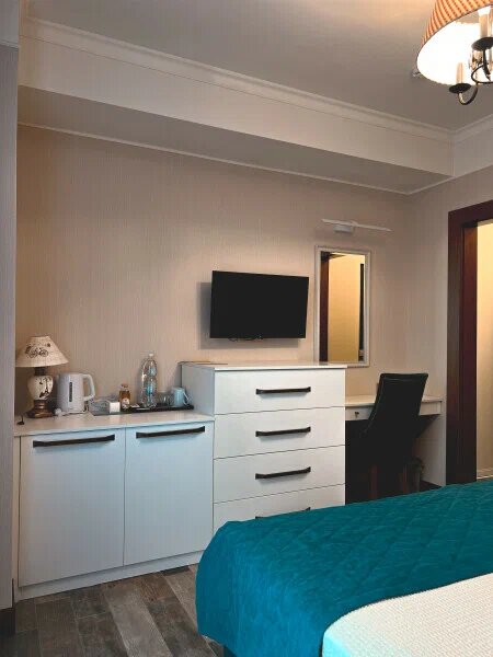 Стоимость проживания и информацию о наличии свободных номеров вы можете уточнить по телефону или на сайте гостиницы. Здесь вас ждут уютная двуспальная кровать, мягкий диван, отдельная кухня и совмещенный санузел, оснащённый всем необходимым.