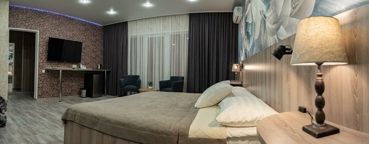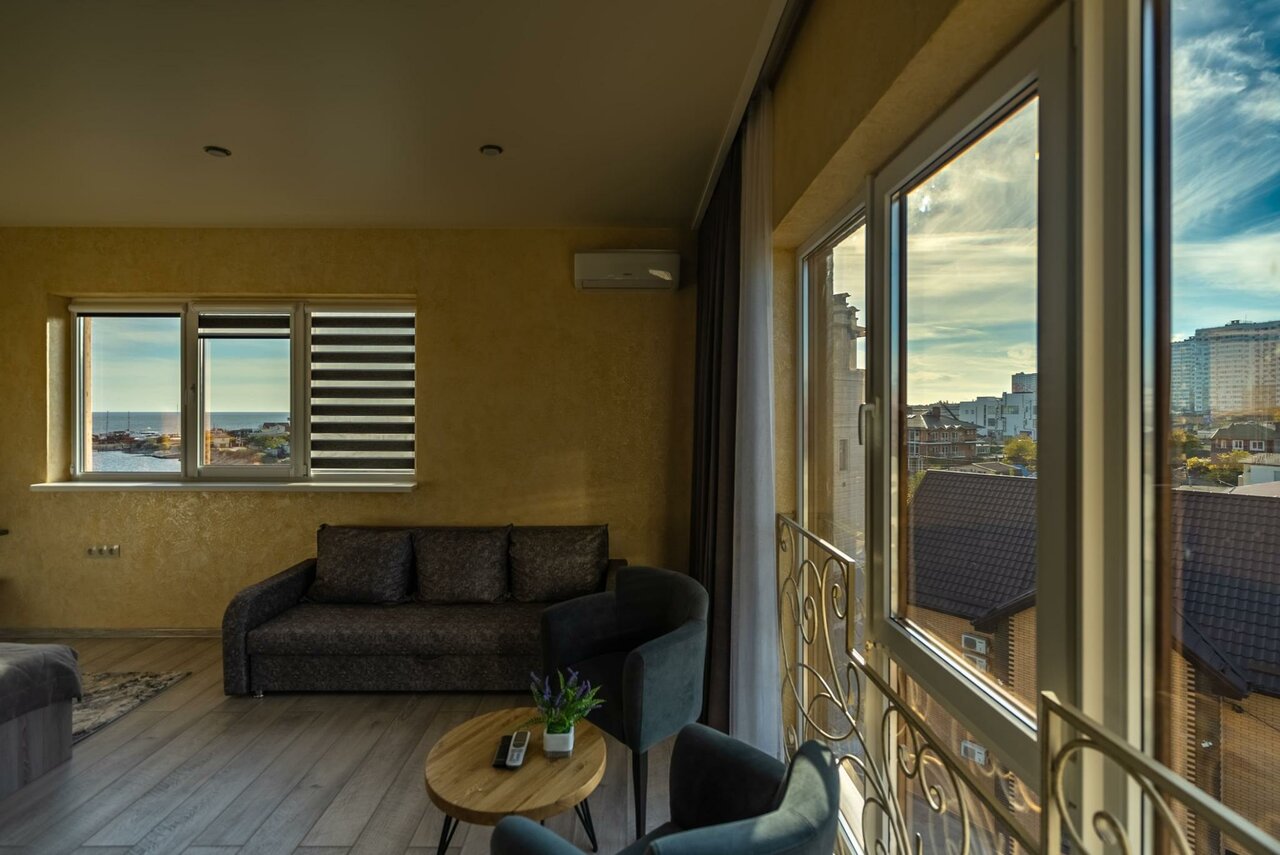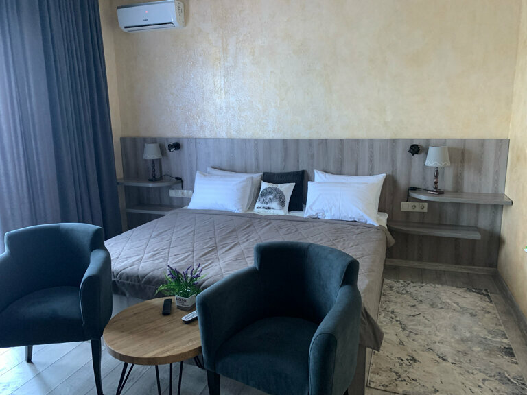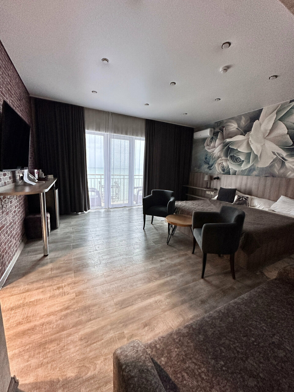 Восхитительный отель! Большая кровать, TV с КиноПоиском. Шикарный вид на открытое море и Суджукскую косу. Очень уютно! Просторная ванная комната. Завтраки сытные и вкусные на выбор предлагают два блюда. Отличный персонал!