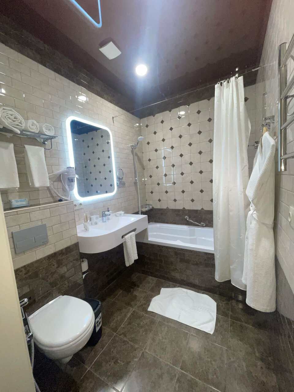 Удобства: — Номера с кондиционером, звукоизоляцией, Wi-Fi, телевизором, холодильником и санузлом. — Крытый бассейн, сауна, хаммам, баня (платно), бесплатная парковка. — Питание: завтрак, полупансион или полный пансион (по выбору). — Круглосуточная стойка регистрации, трансфер (платный), прачечная, консьерж-сервис.