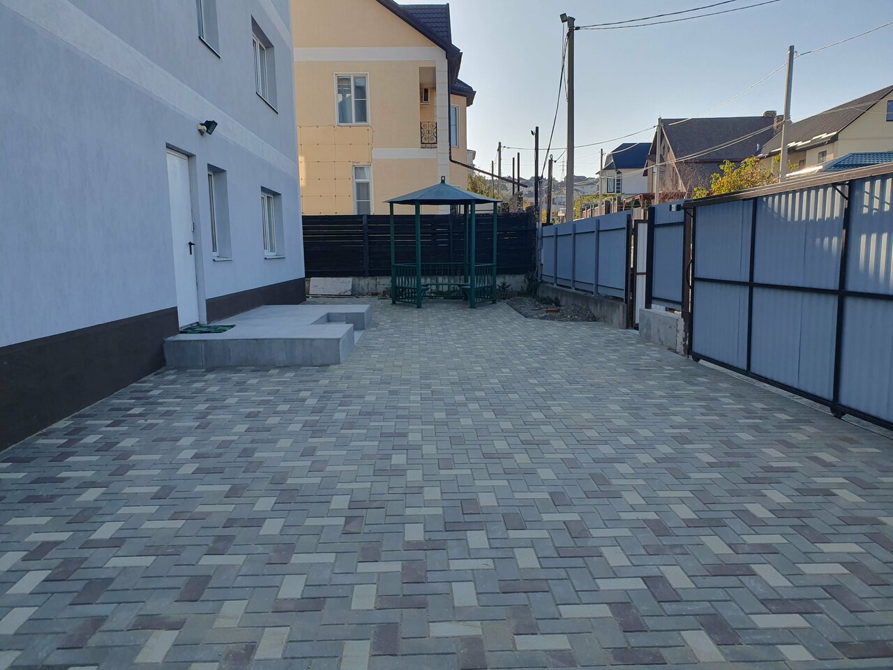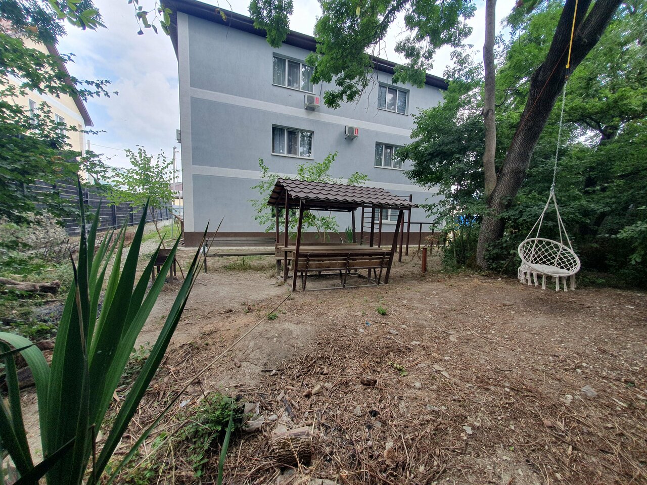 Маленькая частная гостиница. Чисто и уютно в номерах, тихая придомовая территория, нам понравилось. Мангал и беседка для отдыха. Спортзал на первом этаже.