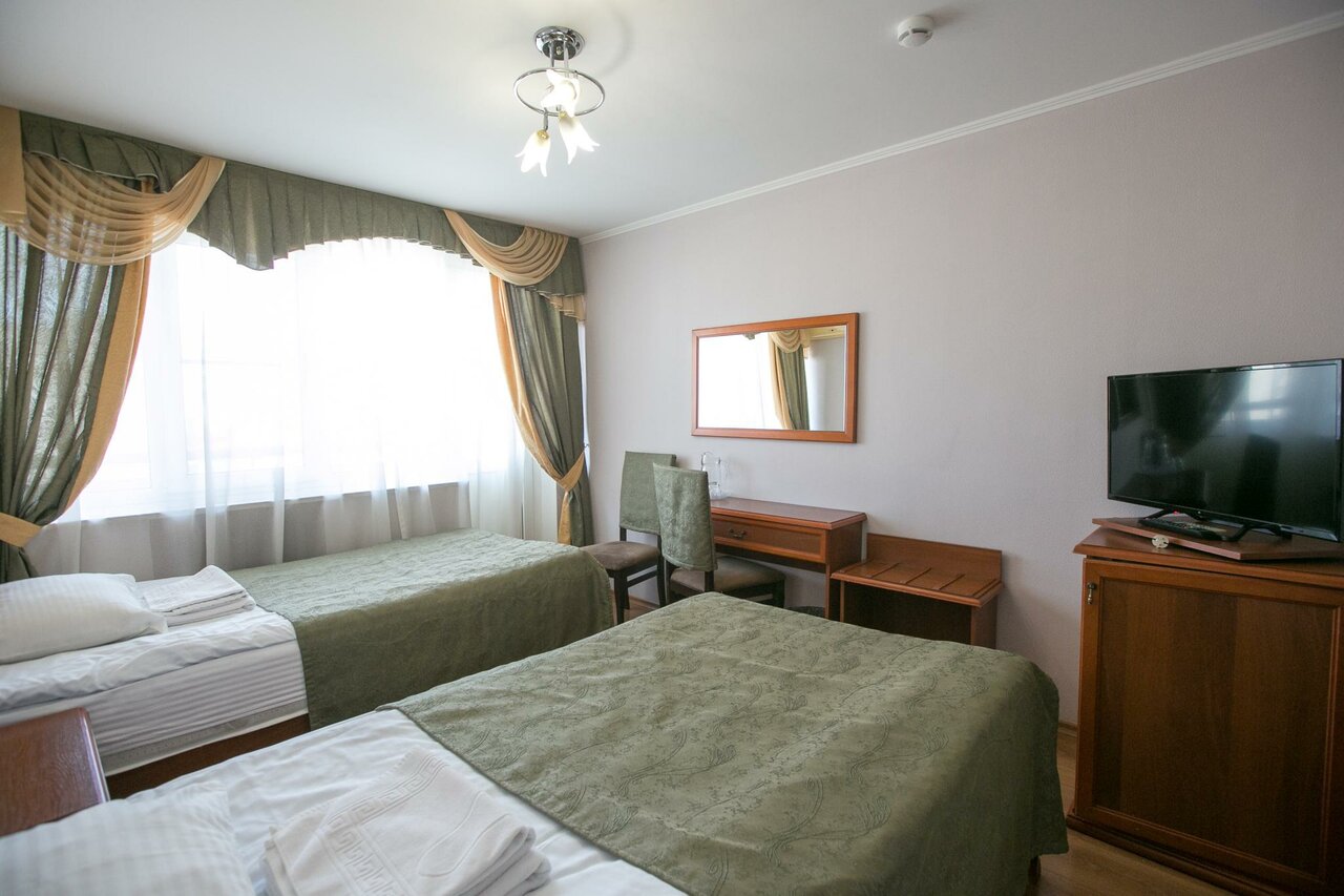 Уютный двухместный номер, состоящий из прихожей, спальной комнаты и ванной комнаты.В номере есть все для комфортного проживания: две односпальные/ двухспальная кровать, рабочее место, телефон, телевизор, холодильник, сплит-система.