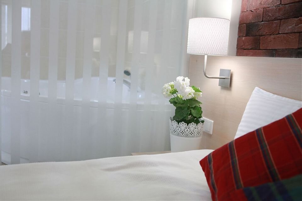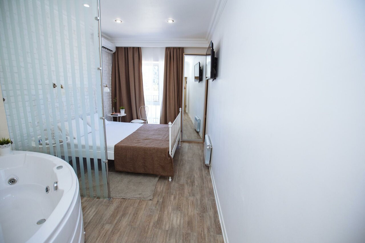 номер повышенной комфортности с одной двуспальной кроватью с гидромассажной ванной в комнате