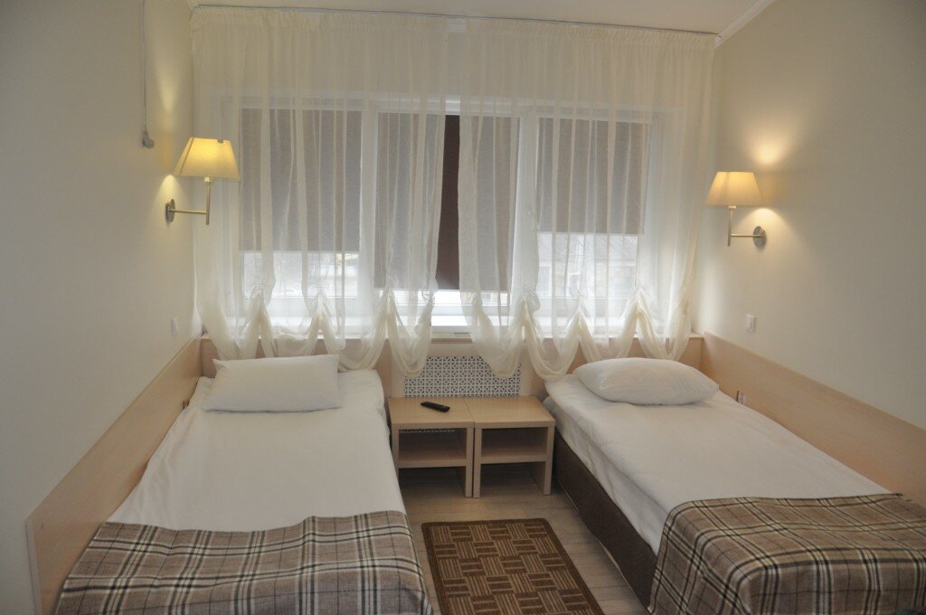 Останавливались в начале марта на одну ночь в двухкомнатном номере. Номер небольшой, но уютный. Немного не хватает шкафа в коридоре. Матрацы удобные, чистое постельное белье и полотенца. В коридоре стоит кулер. Сантехника в хорошем состоянии. Вода очень мягкая, такое ощущение что мыльная. При умывания не всегда понятно смыл ли с лица средство для умывания или нет. В целом для остановки на недлительный срок очень рекомендую.