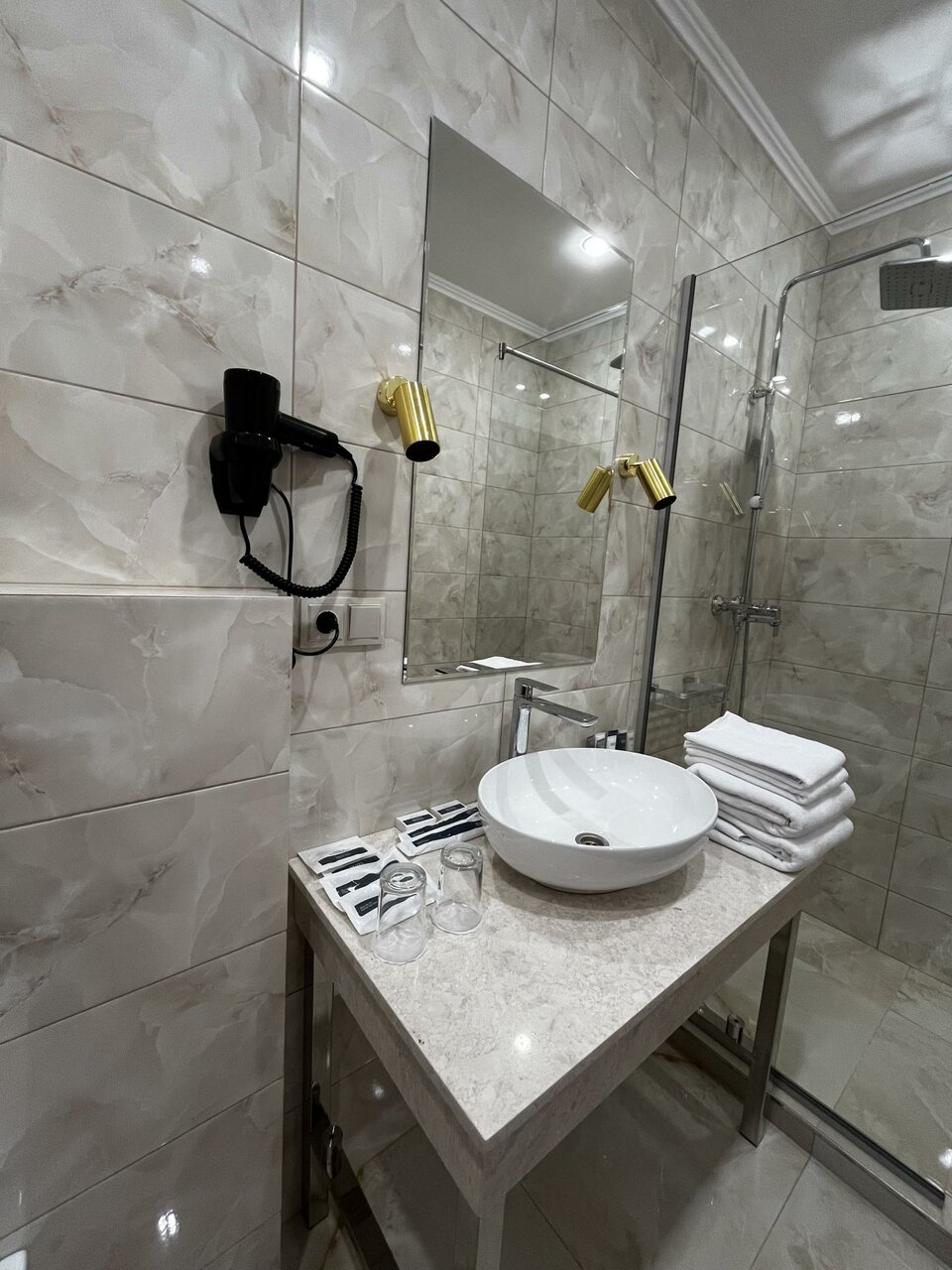 Останавливалась здесь на пару дней в середине января. Отель понравился! Отличное расположение, хорошая цена, симпатичные чистые удобные номера, есть всё необходимое. Матрас на кровати волшебный, моя многострадальная спина была счастлива. И подушки удобные. Персонал приветливый и доброжелательный. Замечательные завтраки! Ассортимент оптимальный, чтобы вкусно (очень вкусно!) и сытно поесть. Из нюансов: 1. В санузле большущее окно, и потому зимой там довольно прохладно (в самом номере тепло). Технически это не изменить, так что гостям отеля нужно просто быть готовыми к этому. 2. Я бы добавила зубочистки на столики в столовой и инструкцию к ТВ в номере. Резюмируя: если ценовая политика и уровень обслуживания сохранятся, то во время поездок в Новороссийск буду останавливаться именно тут. Перед поездкой читала отзывы и думала, будет хуже, но по факту очень довольна. Спасибо отелю за приятные впечатления!