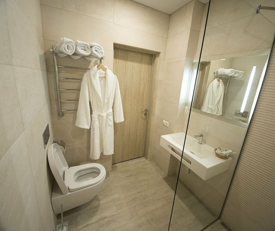 - Современные удобства (кондиционер, холодильник, халаты, тапочки).