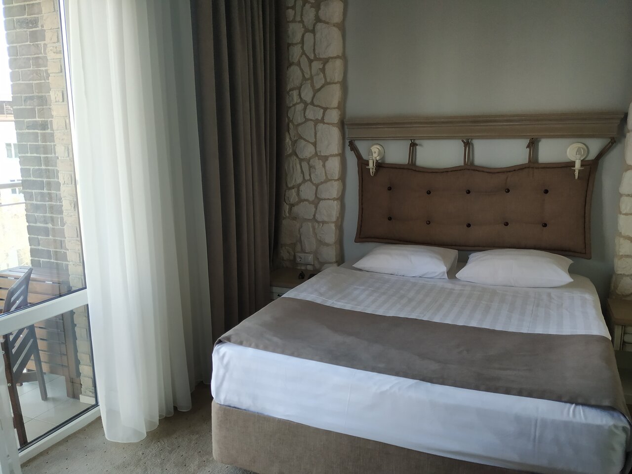 Отличная, современная гостиница, чистые, шикарные номера с кондиционером, холодильником, халатами и тапочками, на первом этаже ресторан, вкусный завтрак, 5 минут до пляжа, единственный минус — это маленькая парковка