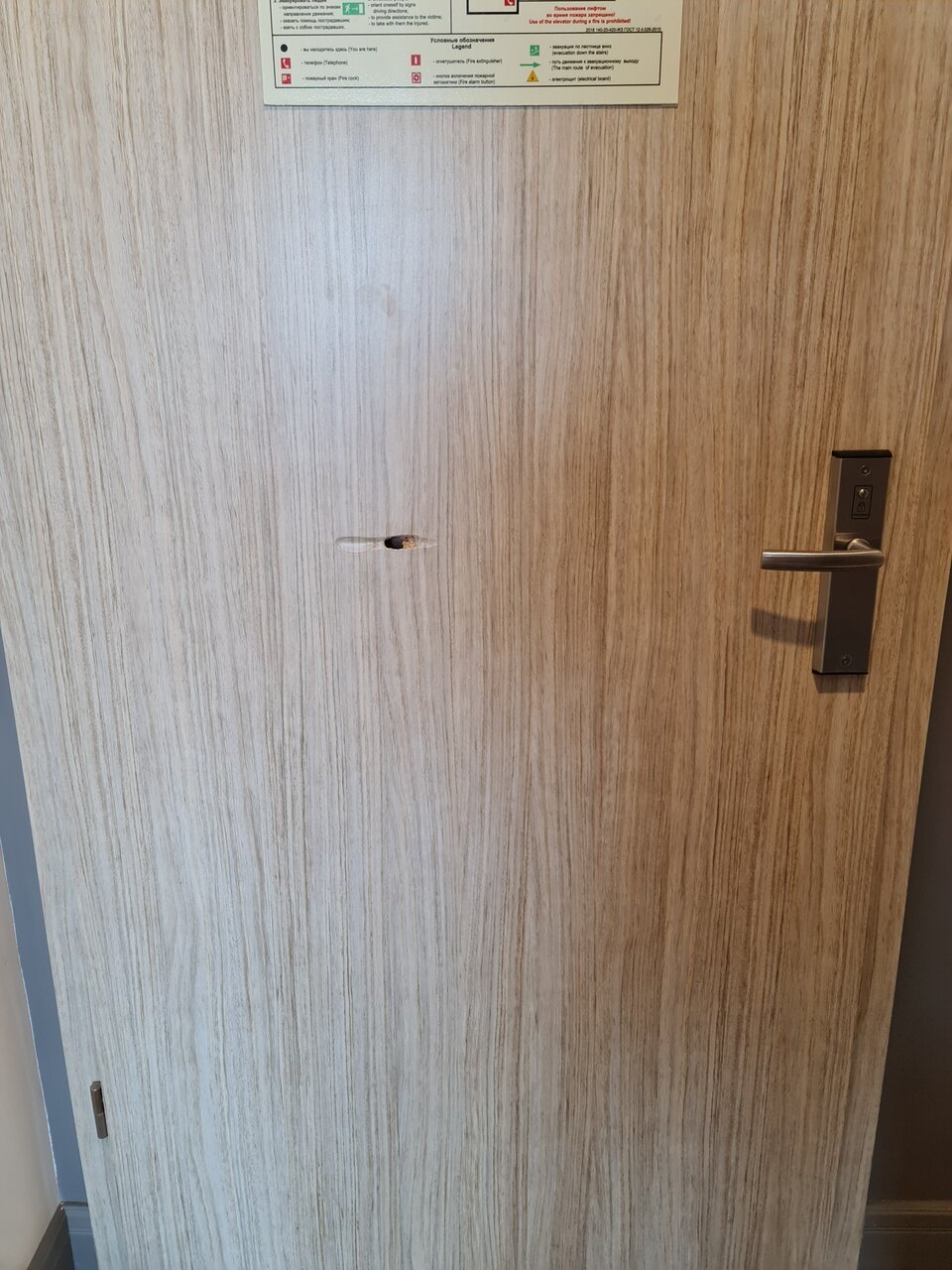 Обман персонала портит общее впечатление, это факт. Вчера заселился в эту гостиницу, отдал в прачечную рубашку, специально уточнил, успеют ли постирать и погладить до обеда следующегодня, меня уверили, что конечно успеют. Сегодня приносят грязную рубашку, при этом делая вид, что всё норм. Ладно, что не сделали работу, подвели клиента, которому теперь идти на встречу в несвежей рубашке, но зачем врать-то? Раньше был хороший отель, всегда в нем останавливался, но теперь, видимо из-за наплыва клиентов, менеджмент отеля забил на репутацию, видимо решили и так сойдёт. И почему-то в дверях дыры Очень печально, два вам