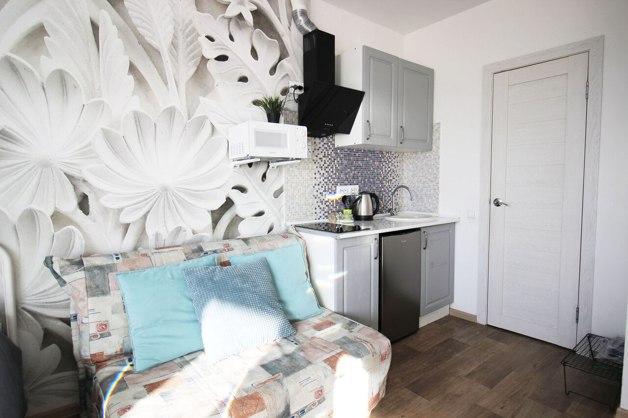 - Администратор всегда на связи.; Приятный интерьер.; Новые и уютные студии.; Удобная мебель (раскладной диван, двуспальная кровать).; Скоростной интернет.