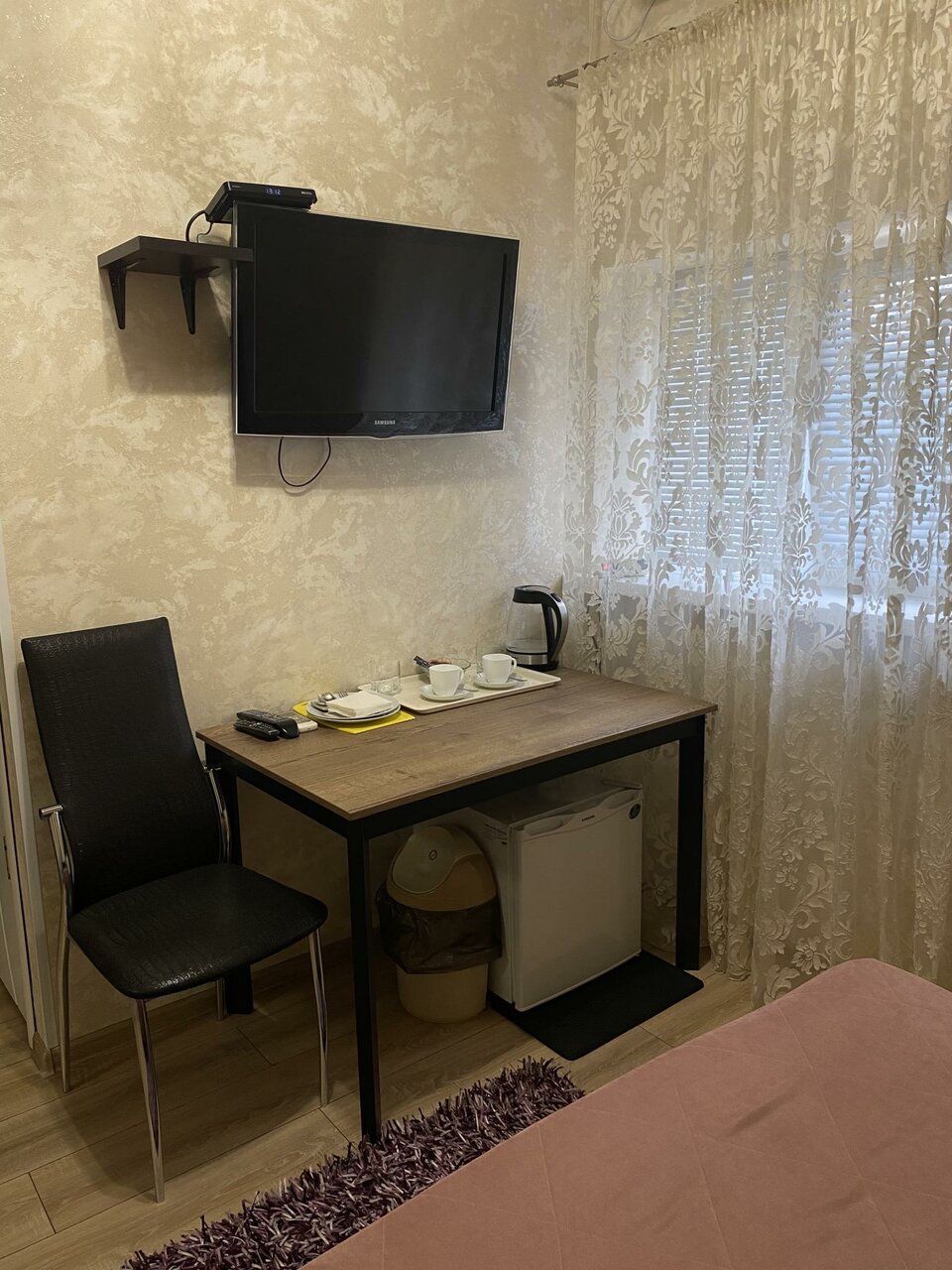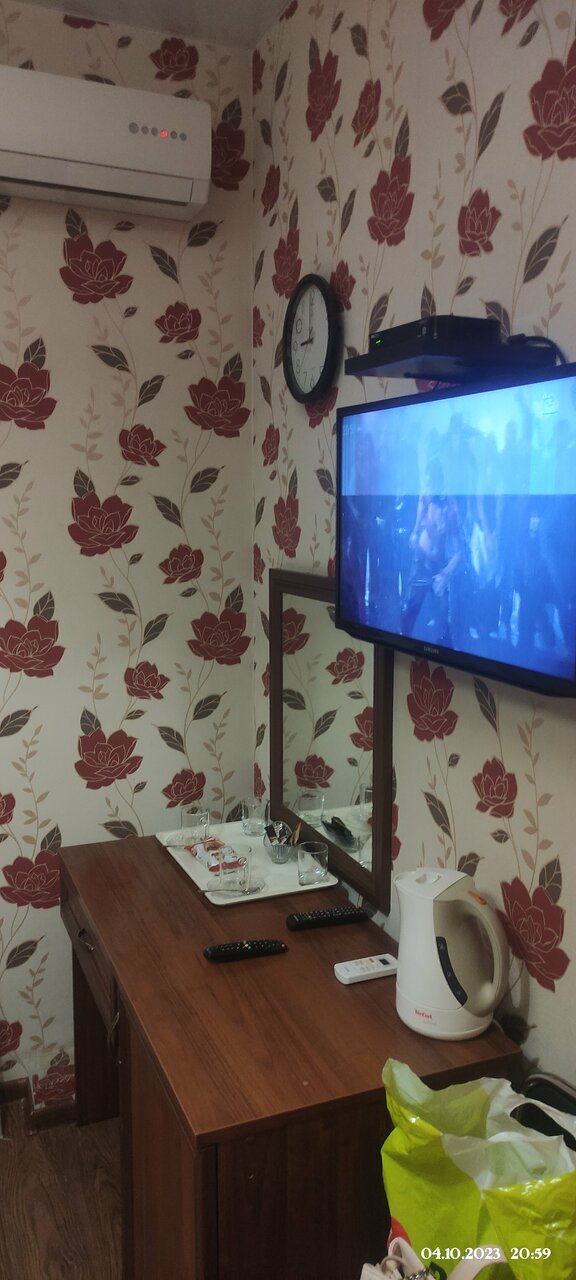 Гостили в новогодние праздники. Проживали в улучшенном номере. Номер просторный. Окна в пол, выходят на улицу на проезжую часть. С открытыми окнами спать некомфортно, т.к. постоянно проезжают автомобили. Ванная комната просторная, но имеются ступеньки о которые можно споткнуться или оступиться, если быть не очень внимательным. Лифта нет. С тяжелыми чемоданами подниматься по лестнице на третий этаж то еще удовольствие. Рядом с входом в гостиницу есть круглосуточный магазин. Голодным не останешься. Через дорогу магазин ‘Магнит’. Удобно добираться пешком до автовокзала (10 минут) и до морского порта, набережной (10 минут). В целом, достойное место для краткосрочного пребывания в Новороссийске. Не пожалели, что остановились здесь!!!