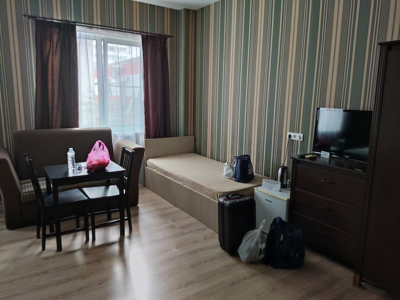 Гостиница и гостиница. Всё что нужно в номере есть, чисто, сухо, туалет, горячая вода. Номера свежие, не ушатанные. Не заметил признаков отопительной системы, зимой скорее всего будет прохладно. Ничего плохого, как и особенно хорошего сказать не могу. Хороший вариант полностью соответствующий своей цене
