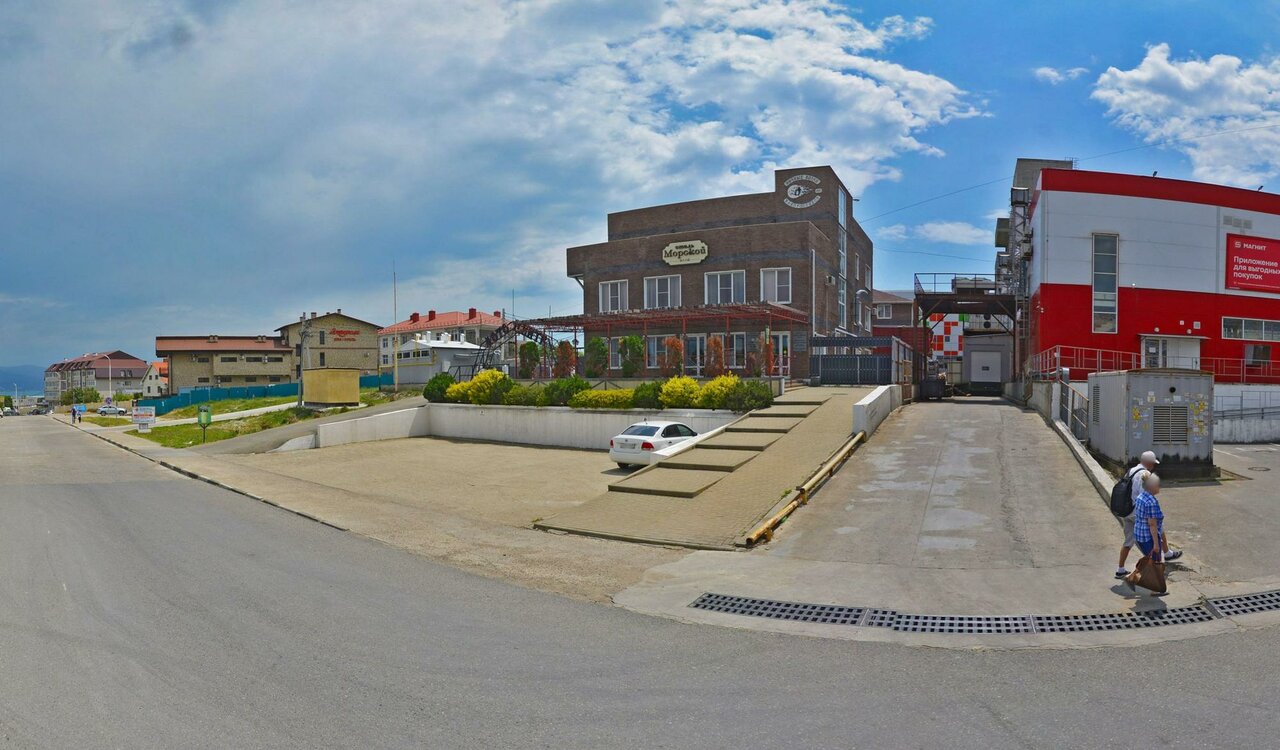 Отель понравился, Морской рядом с пляжем Алексино, 5 минут пешком, приветливые администраторы заселились даже раньше, в номере все необходимое, минихолодильник, кондиционер, чайник, фен, посуды немного. Есть общий балкон с сушилкой. Рядом с отелем Магнит, столовая, и еще новая столовая Буфет, где очень вкусно и красиво! Мы второй раз были тут, и еще вернемся!