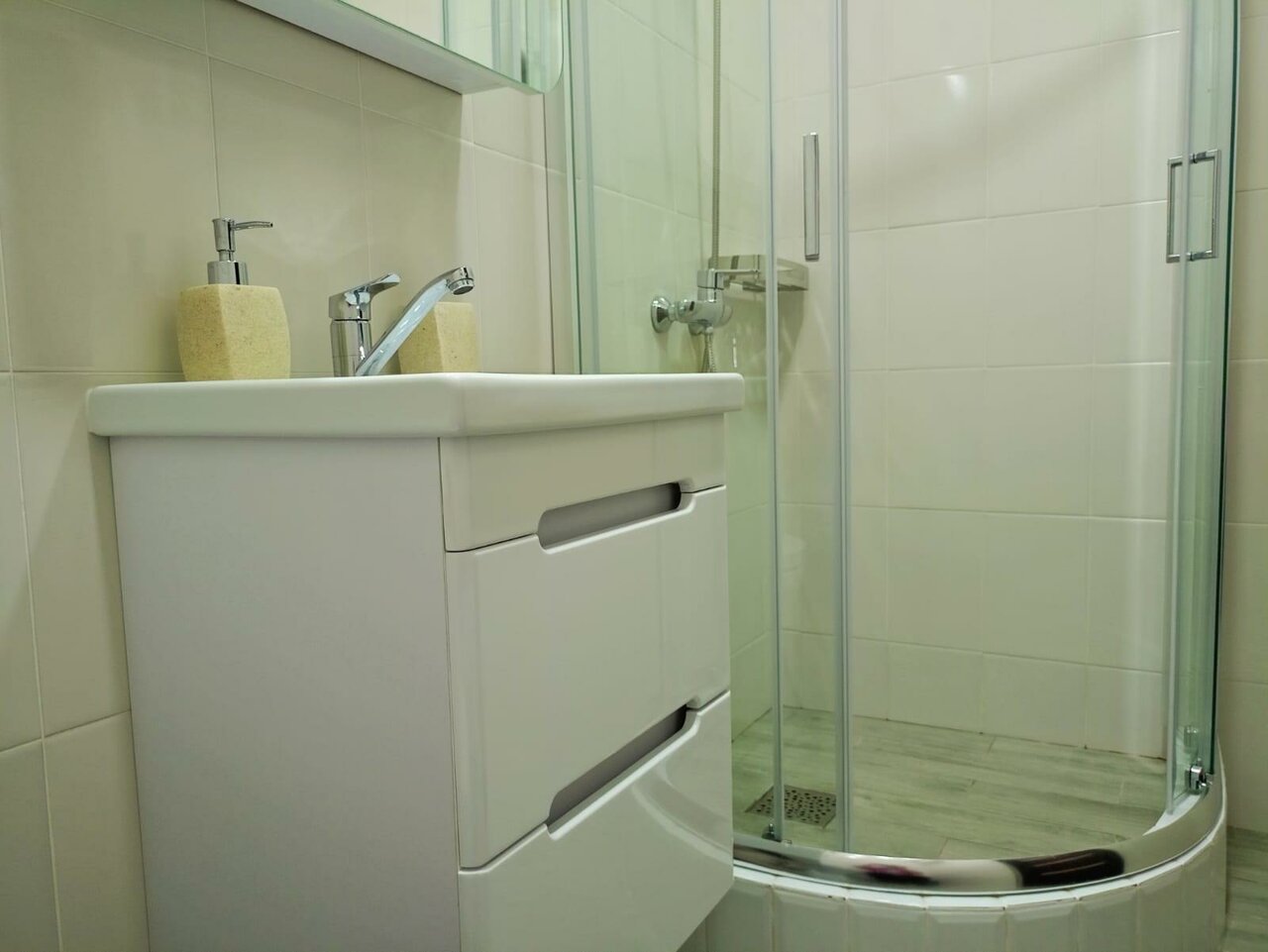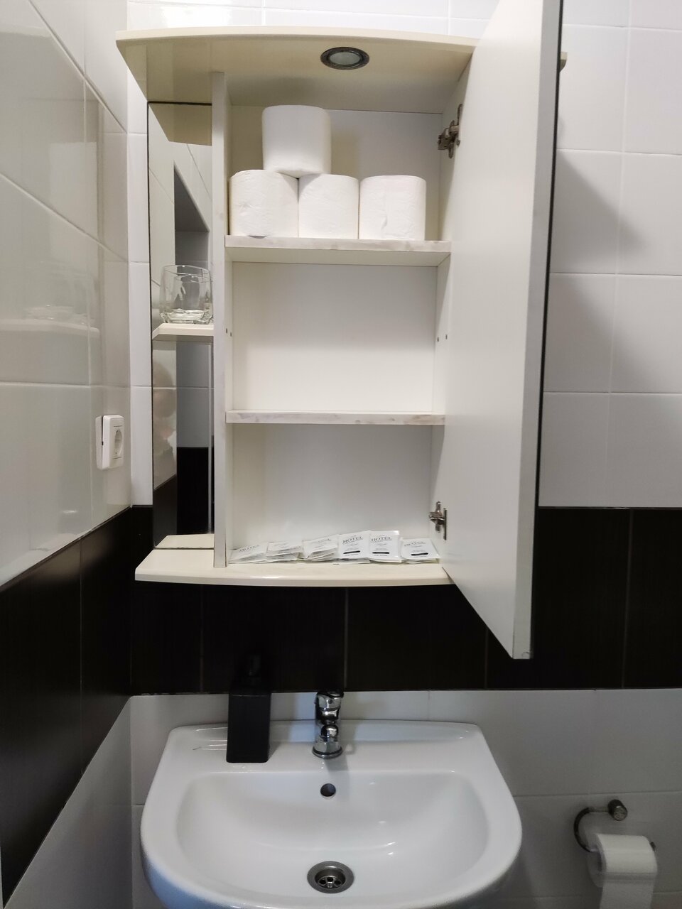 Маленькие баки с горячей водой, в номере для троих не хватило даже для двоих.